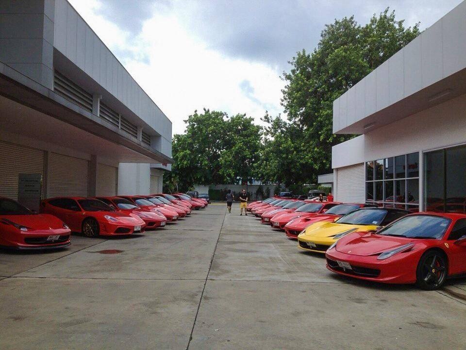 Hơn 20 siêu xe Ferrari, chủ yếu màu đỏ, vừa có cuộc hội ngộ tại Bangkok, Thái Lan.
