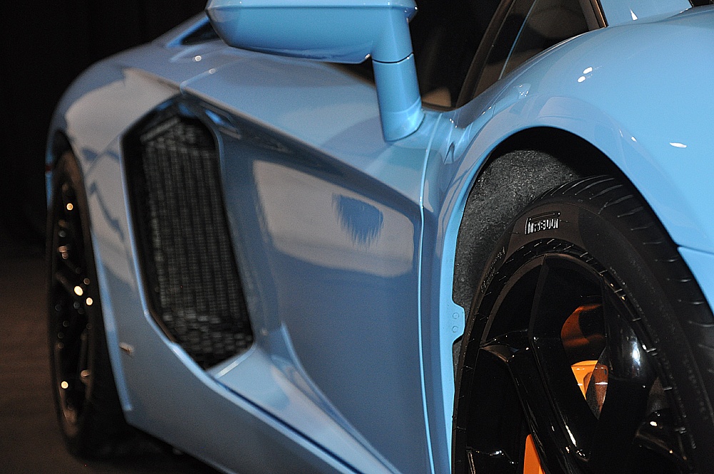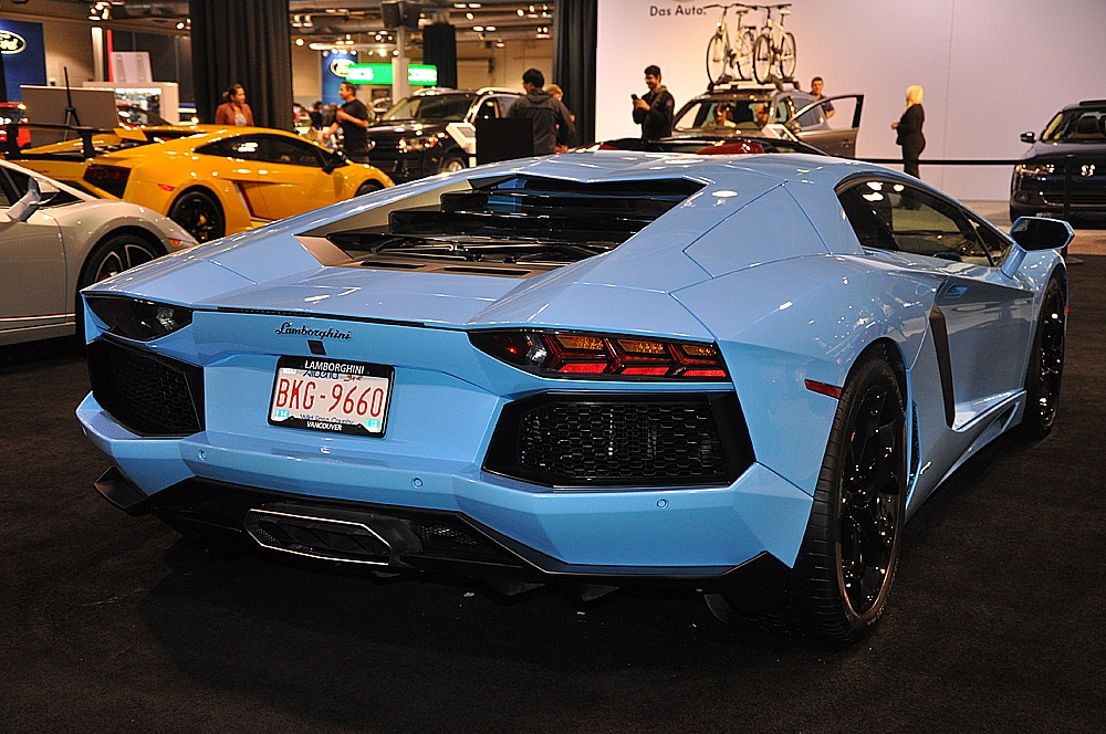 | Một siêu xe Aventador coupe khác, với nước sơn màu xanh rất đẹp. |