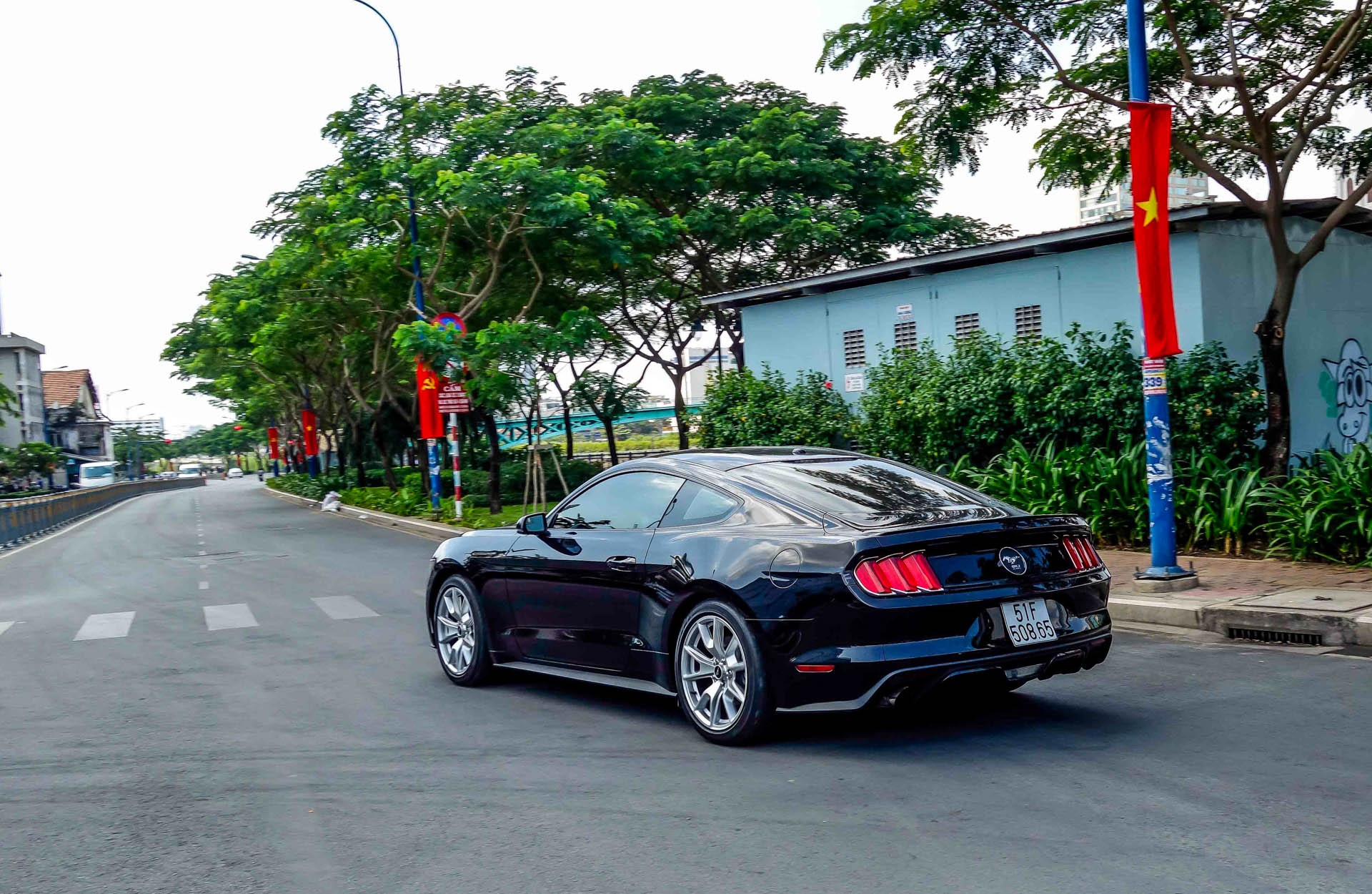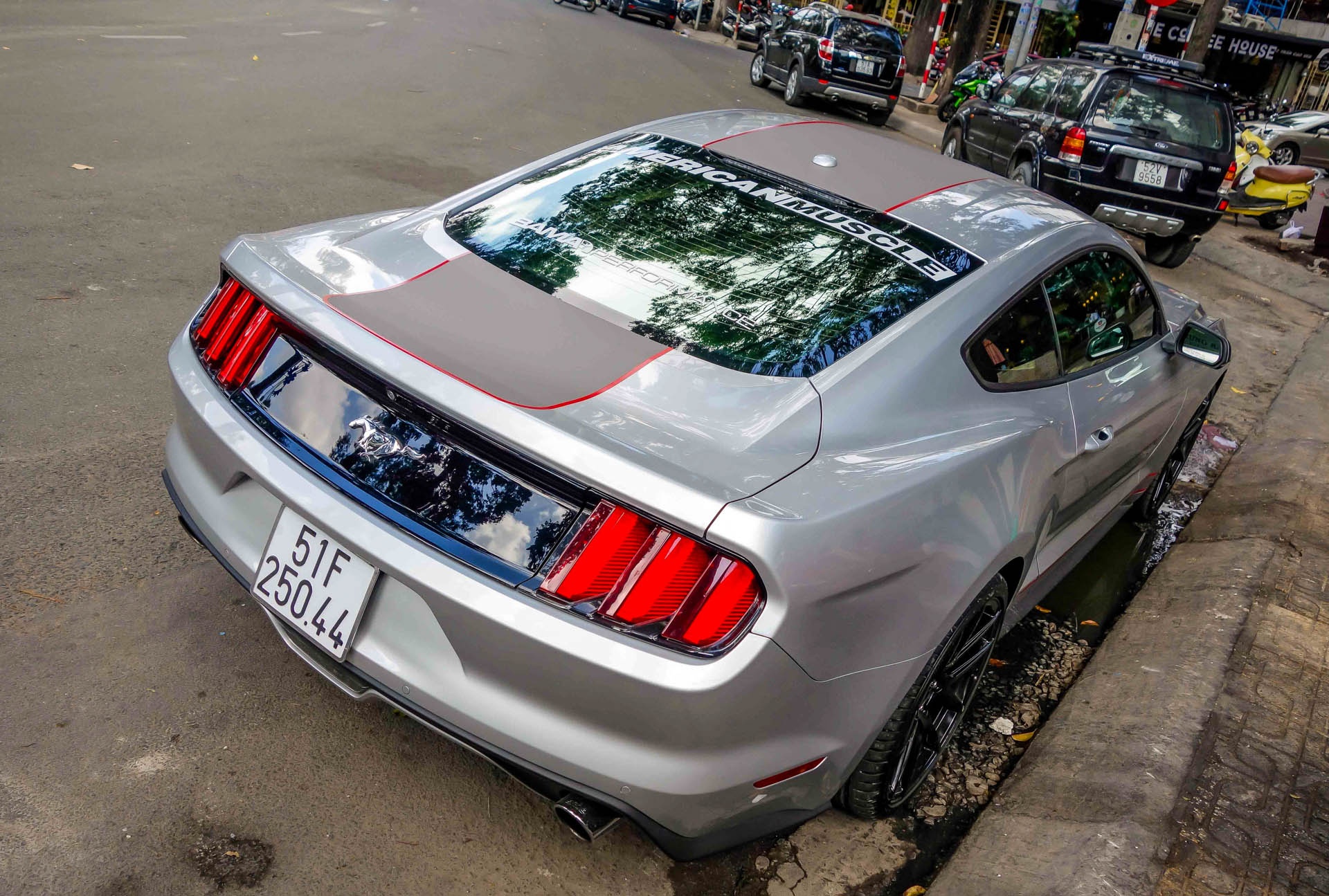 | Ford Mustang 2015 màu độc cùng dải decal chạy dọc thân xe khá bắt mắt. |