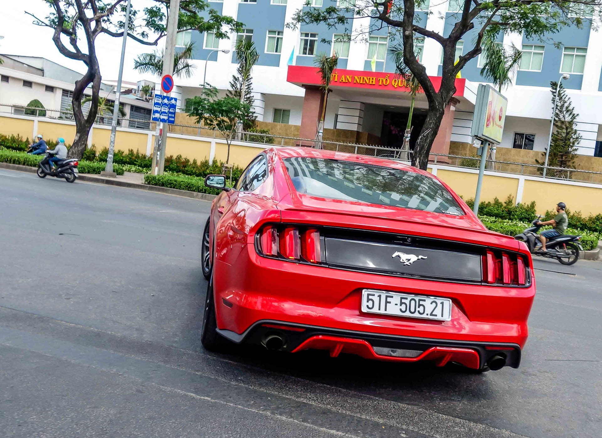 | Ford Mustang 2015 màu đỏ xuất hiện tại góc đường An Dương Vương và Nguyễn Văn Cừ, quận 5, TP HCM. |
