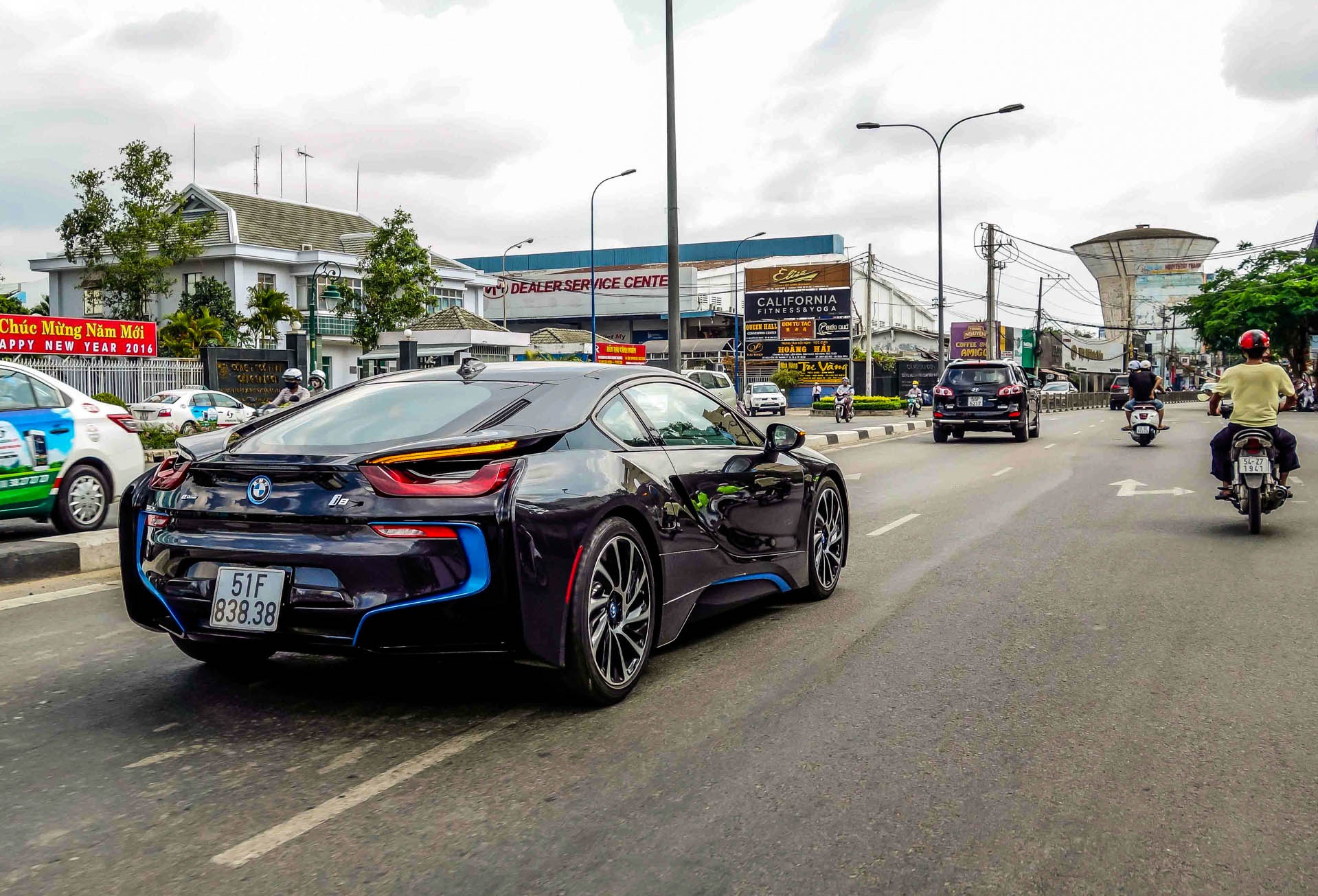 | Một chiếc BMW i8 biển đẹp xuất hiện trên đường Nguyễn Tất Thành, quận 4, TP HCM. i8 là dòng xe được nhiều thiếu gia Sài Gòn ưa chuộng bởi mức giá mềm so với các siêu xe Italy nhưng kiểu dáng đẹp, hiện đại. |