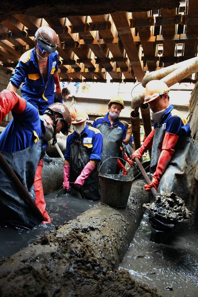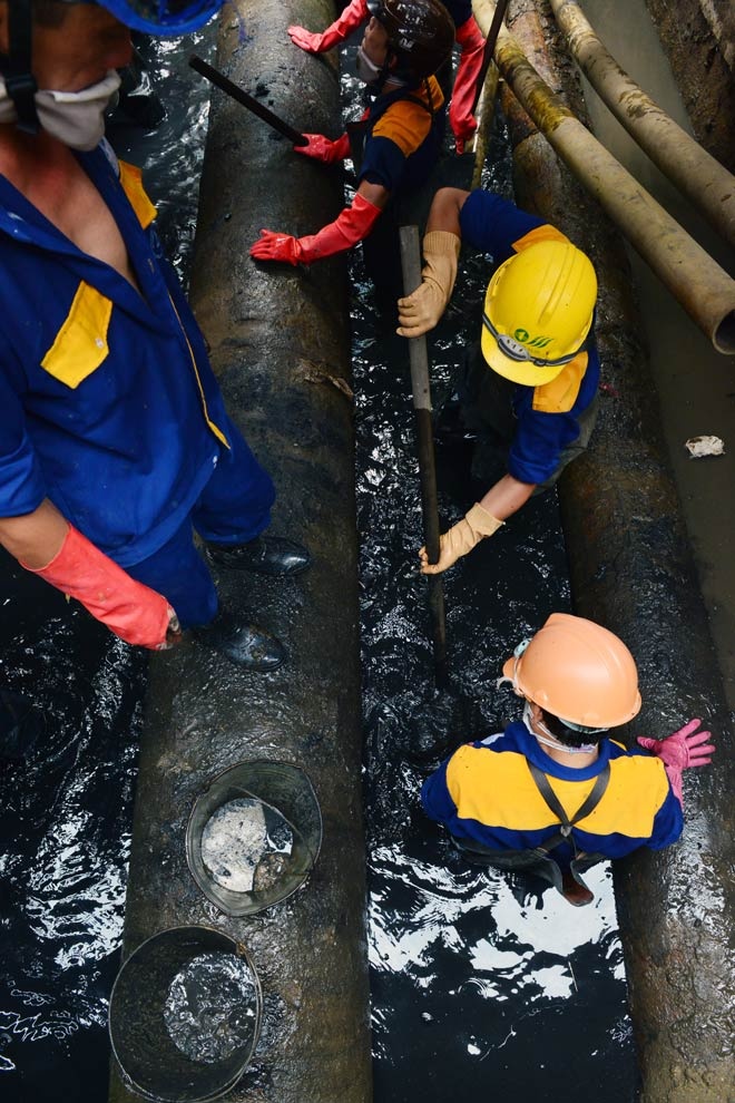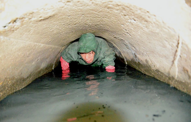 Không chỉ lội mương, các anh còn phải chui xuống dưới hố ga hoặc cống ngầm dưới lòng thành phố. |