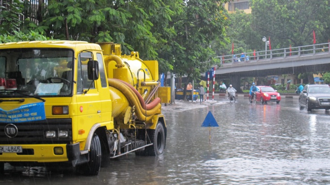 Ngay trong sáng 1/9, Công ty Thoát nước Hà Nội đã phải huy động công nhân ứng trực tại các điểm ngập, vừa mở các nắp hố ga, đồng thời cũng đã phải huy động các xe bơm di động hút thoát nước tại những khu vực ngập sâu cục bộ.