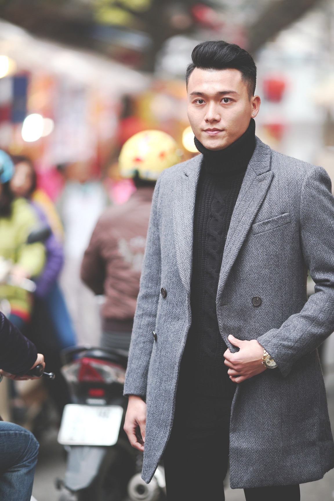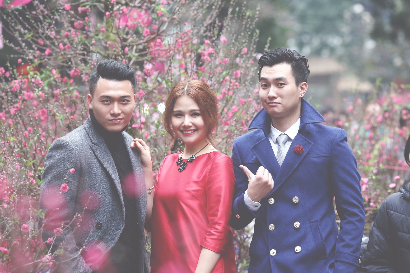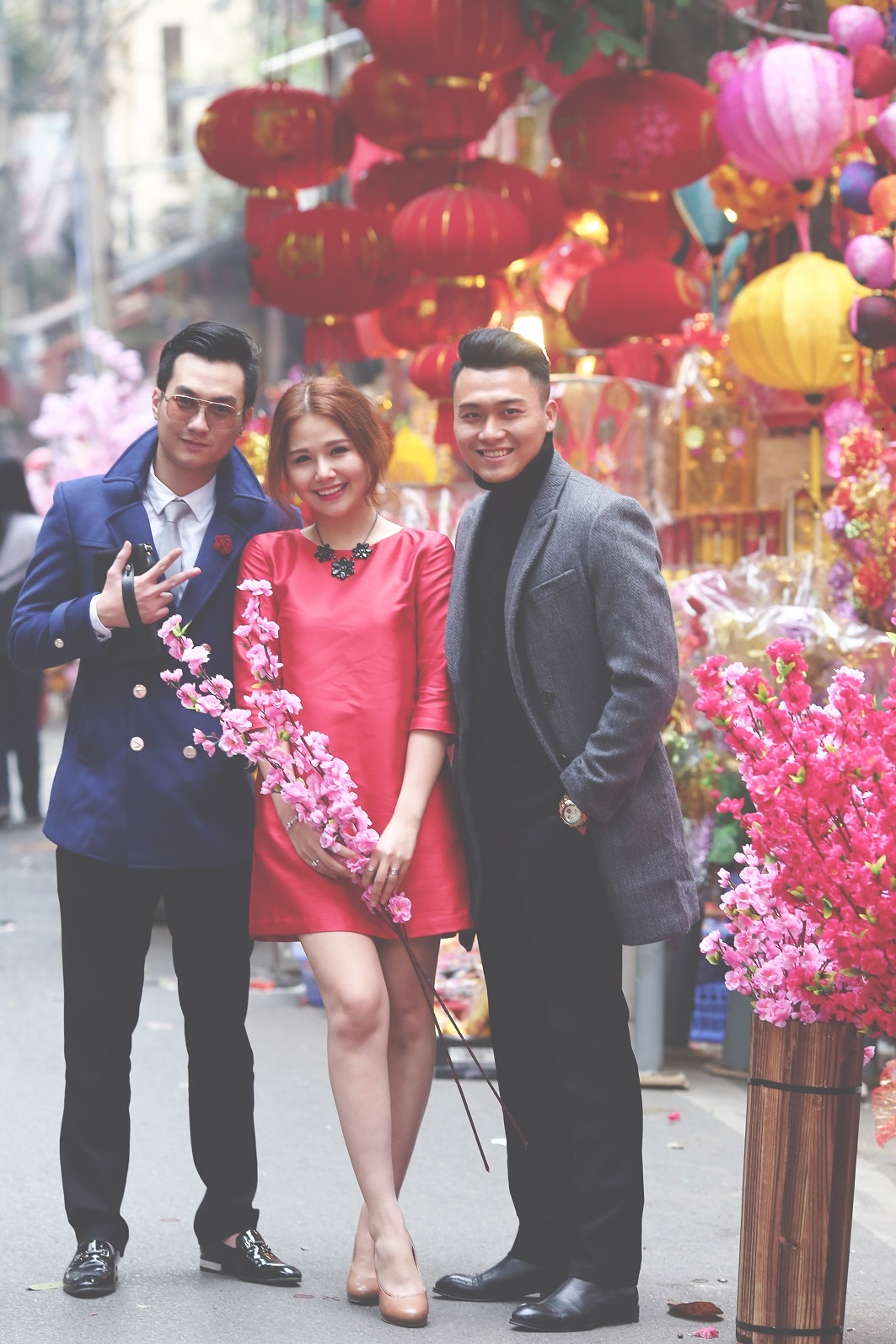 | Sau một thời gian gắn bó với đoàn làm phim, bộ ba Anh Tuấn - Xuân Phúc - Phương Anh ngày càng thân thiết và thường xuyên hỗ trợ nhau trong công việc cũng như trong cuộc sống. Trước thềm năm mới Ất Mùi, cả ba rủ nhau xuống phố thực hiện bộ ảnh đón xuân để gửi tới người hâm mộ. |