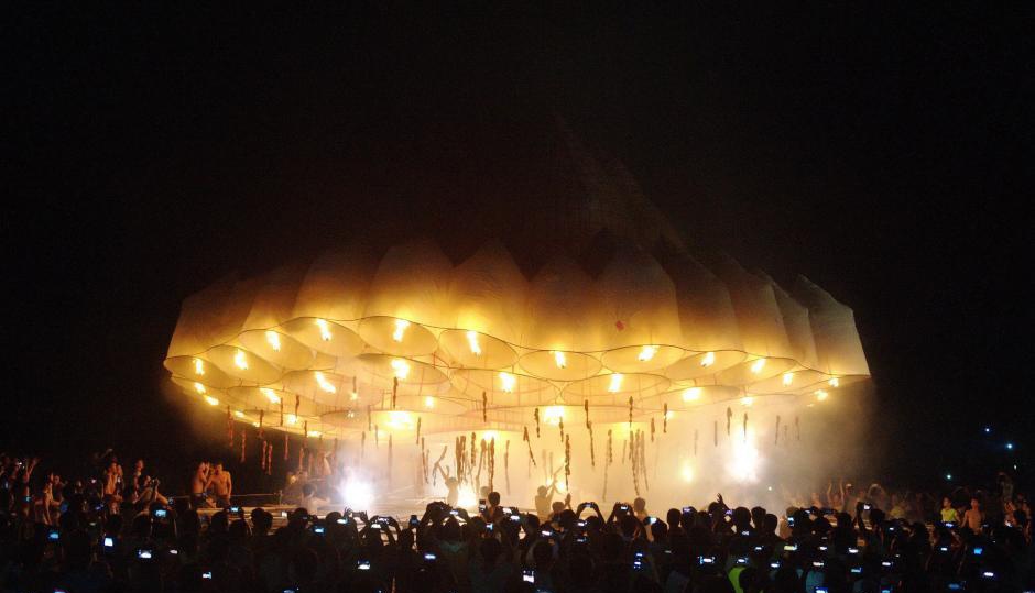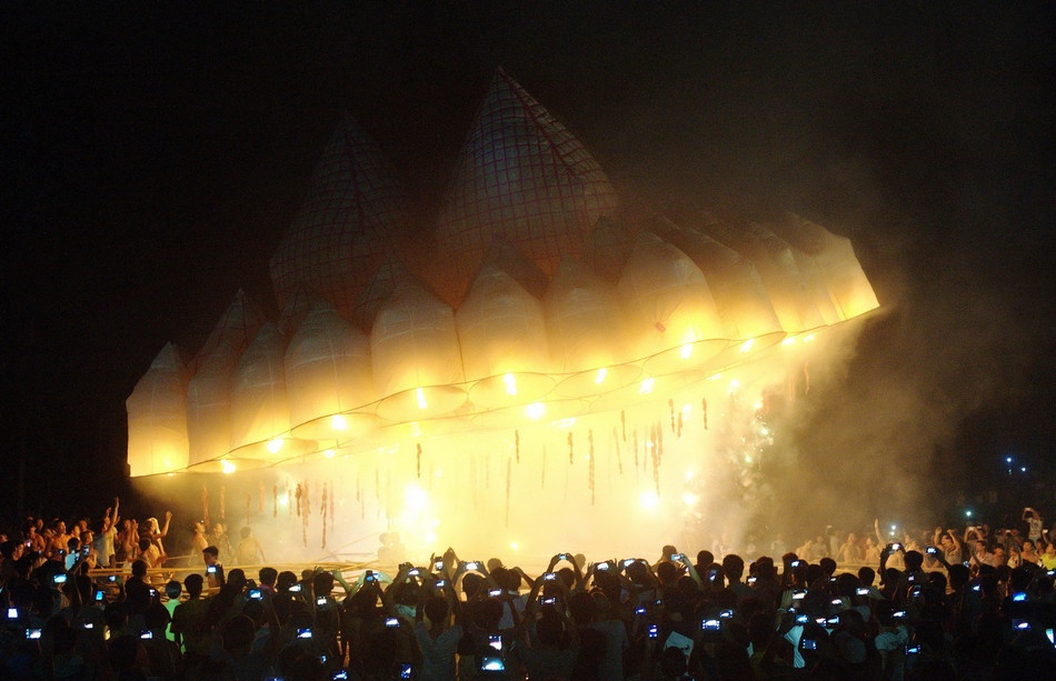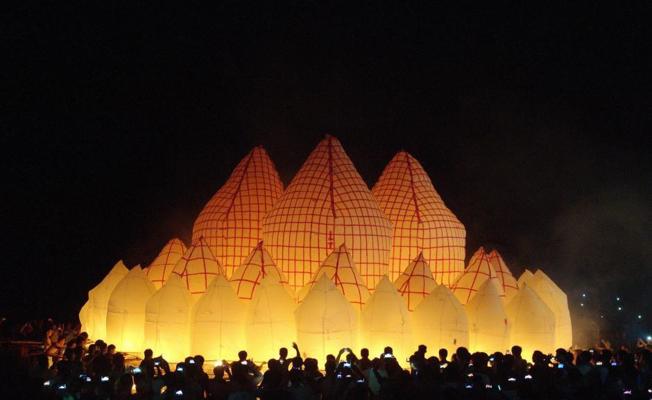 Chiếc đèn trời khổng lồ bay lên trong sự phấn kích của mọi người. |