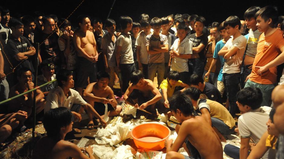 | Thời báo Hoàn cầu của Trung Quốc đưa tin chiếc đèn trời khổng lồ được ghép từ 62 chiếc đèn nhỏ hơn. Người dân Quỳnh Hải thả chiếc đèn tối ngày 18/8 theo giờ địa phương. |