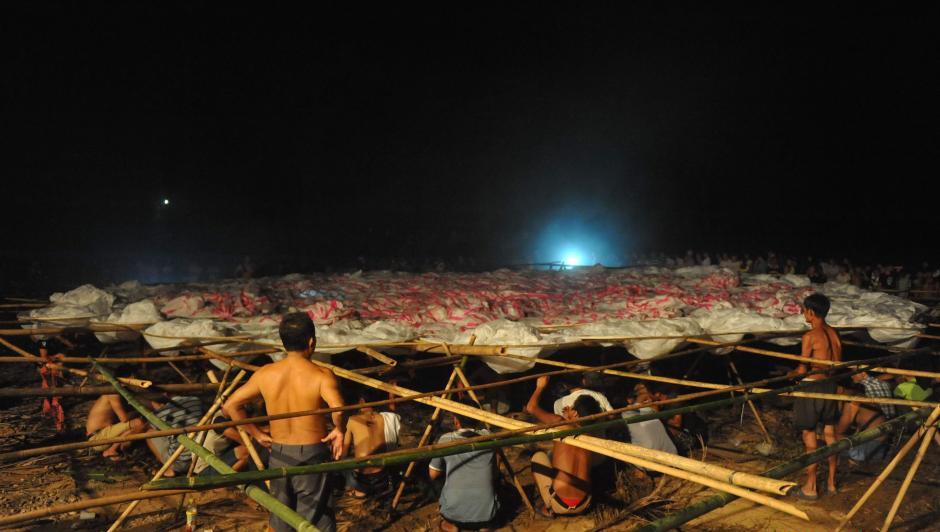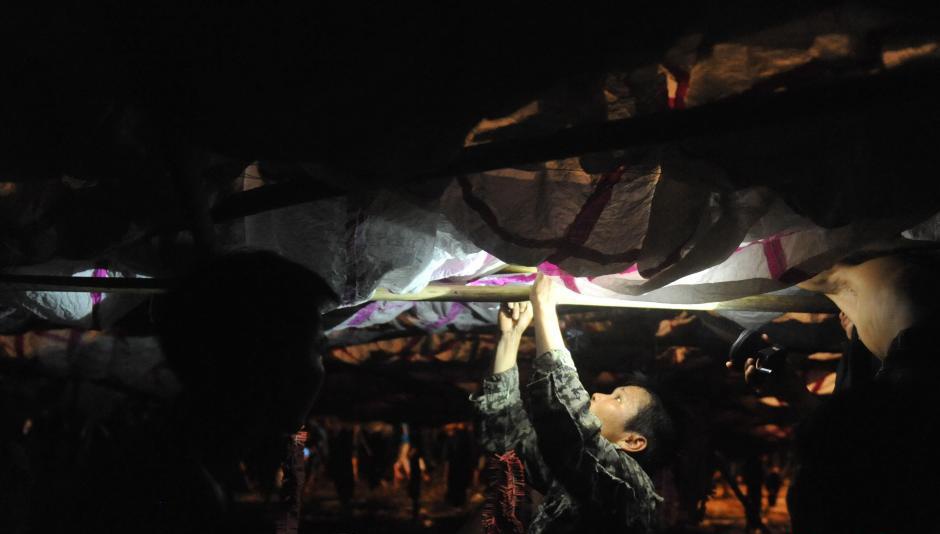 Để hoàn thành chiếc đèn trời khổng lồ, 60 người dân phải làm việc tích cực trong suốt một tuần. |