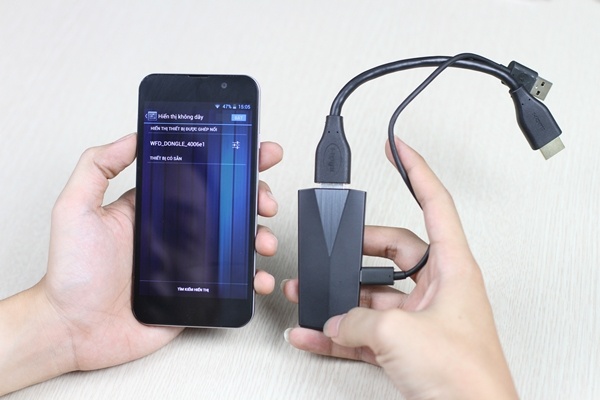 | Cần một chiếc USB Miracast kết nối vào TV làm thiết bị trung gian. |