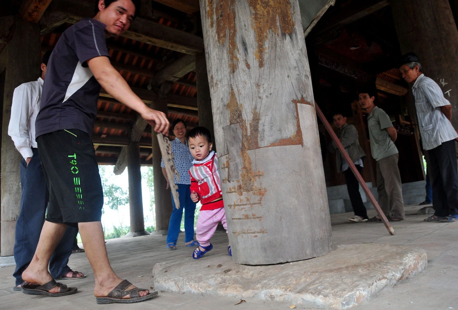 | Toàn bộ đình cổ được làm bằng gỗ lim. "Khi trùng tu, đơn vị thi công mang những cột hoặc chi tiết còn chắc khỏe đi dầm mưa dãi nắng để được thay mới. Một cột gỗ lim cỡ lớn chỏng chơ sau đình, được người dân mang vào", một người dân nói. |