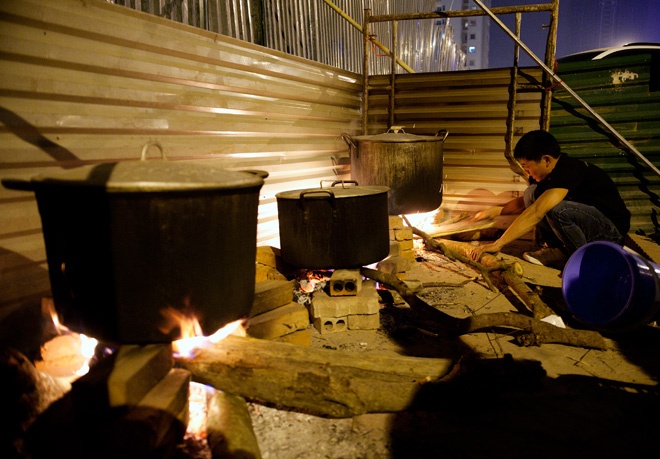 | CLB sinh hoạt đến đêm trong khi chờ bánh chưng luộc đến sáng. |