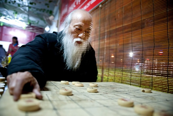 Giáo sư Văn Như Cương cũng có mặt. Ông đấu cờ với dịch giả Đoàn Tử Huyến và chia sẻ, những hoạt động tái hiện Tết cổ truyền như thế này thật thú vị, dù chưa đến Tết nhưng cũng thấy không khí xuân đã về thật vui tươi. |