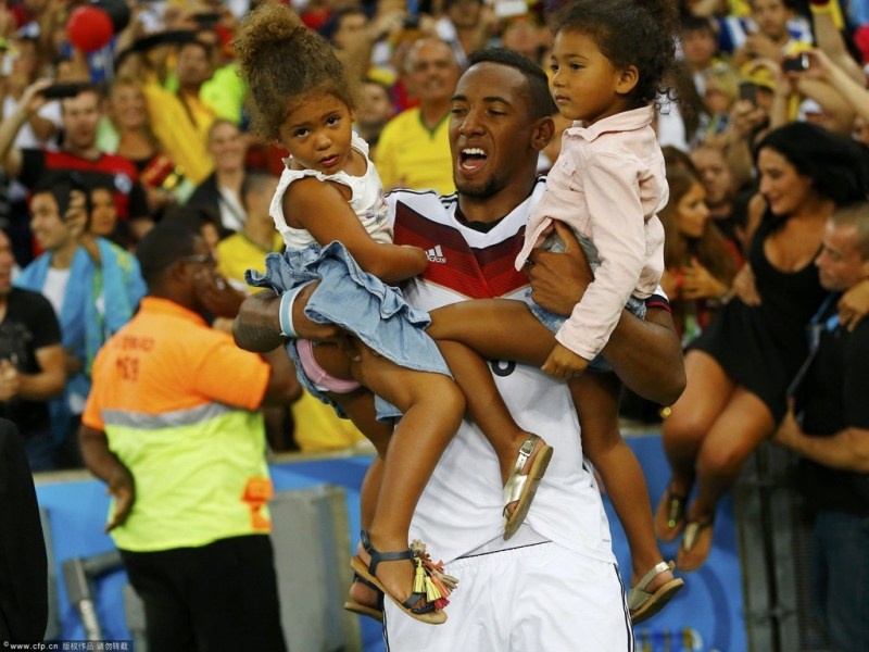 | Boateng ăn mừng bên hai cô công chúa dễ thương. |