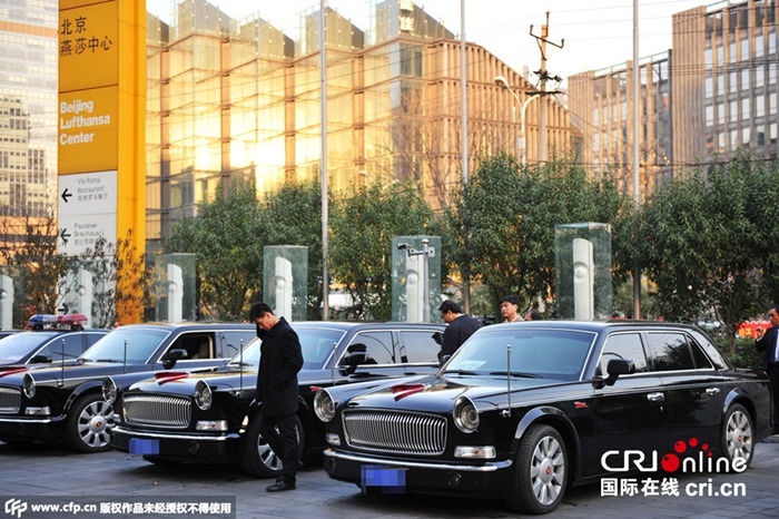 Đoàn xe tham gia phục vụ Hội nghị APEC 2014 tại Bắc Kinh lần này được cho là đoàn xe nội địa có giá đắt nhất Trung Quốc. |