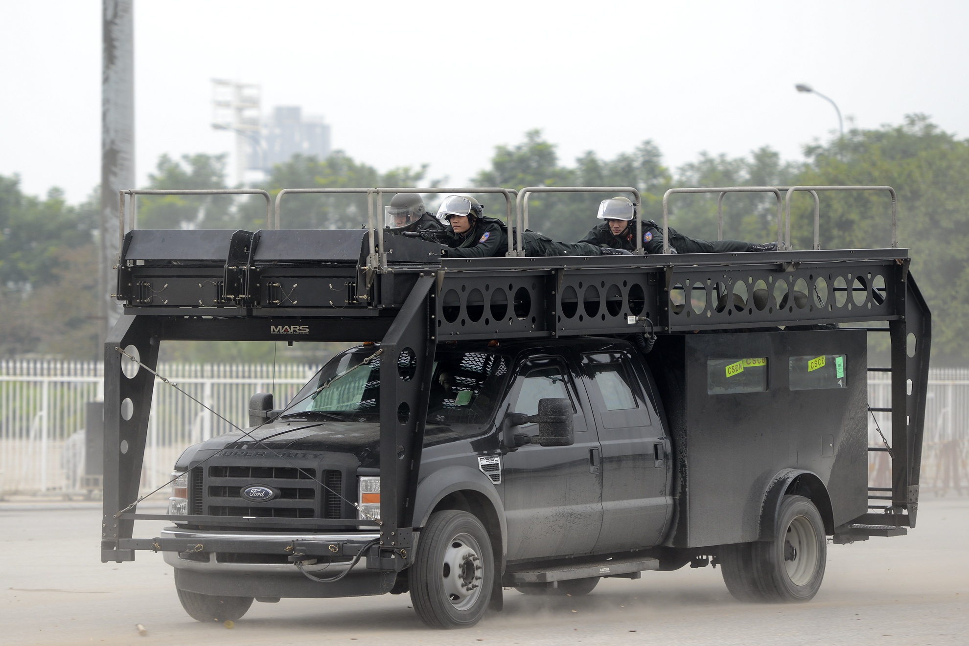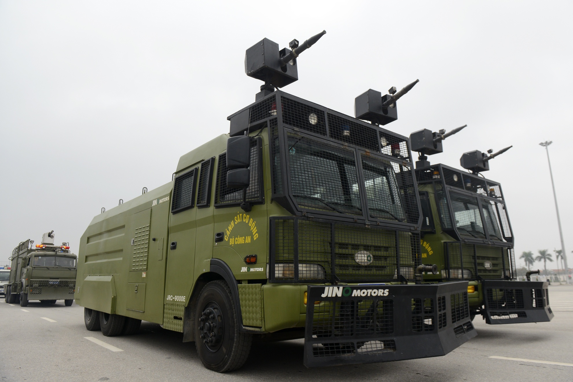 | Dàn xe phun nước chống bạo động của lực lượng Cảnh sát cơ động. |