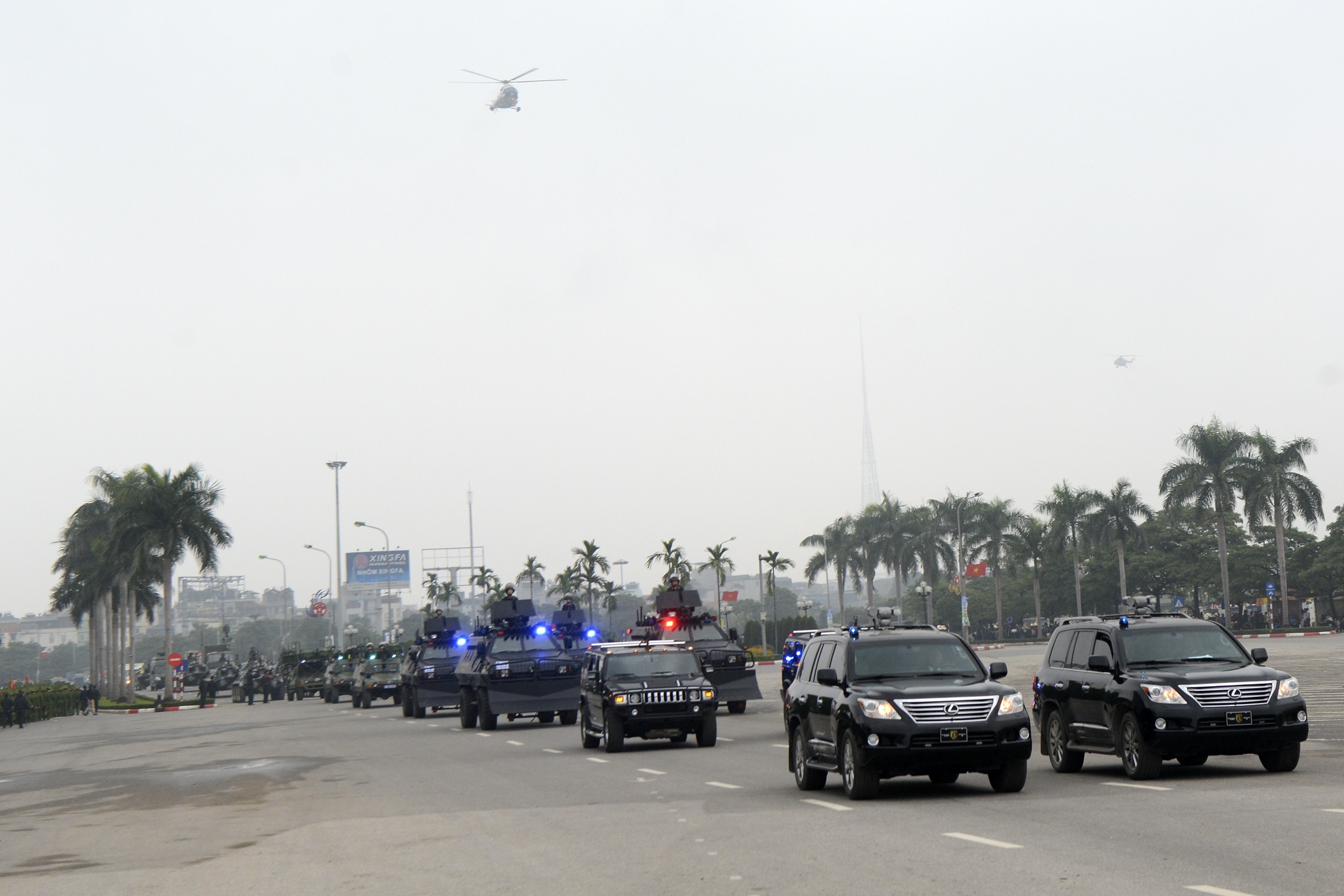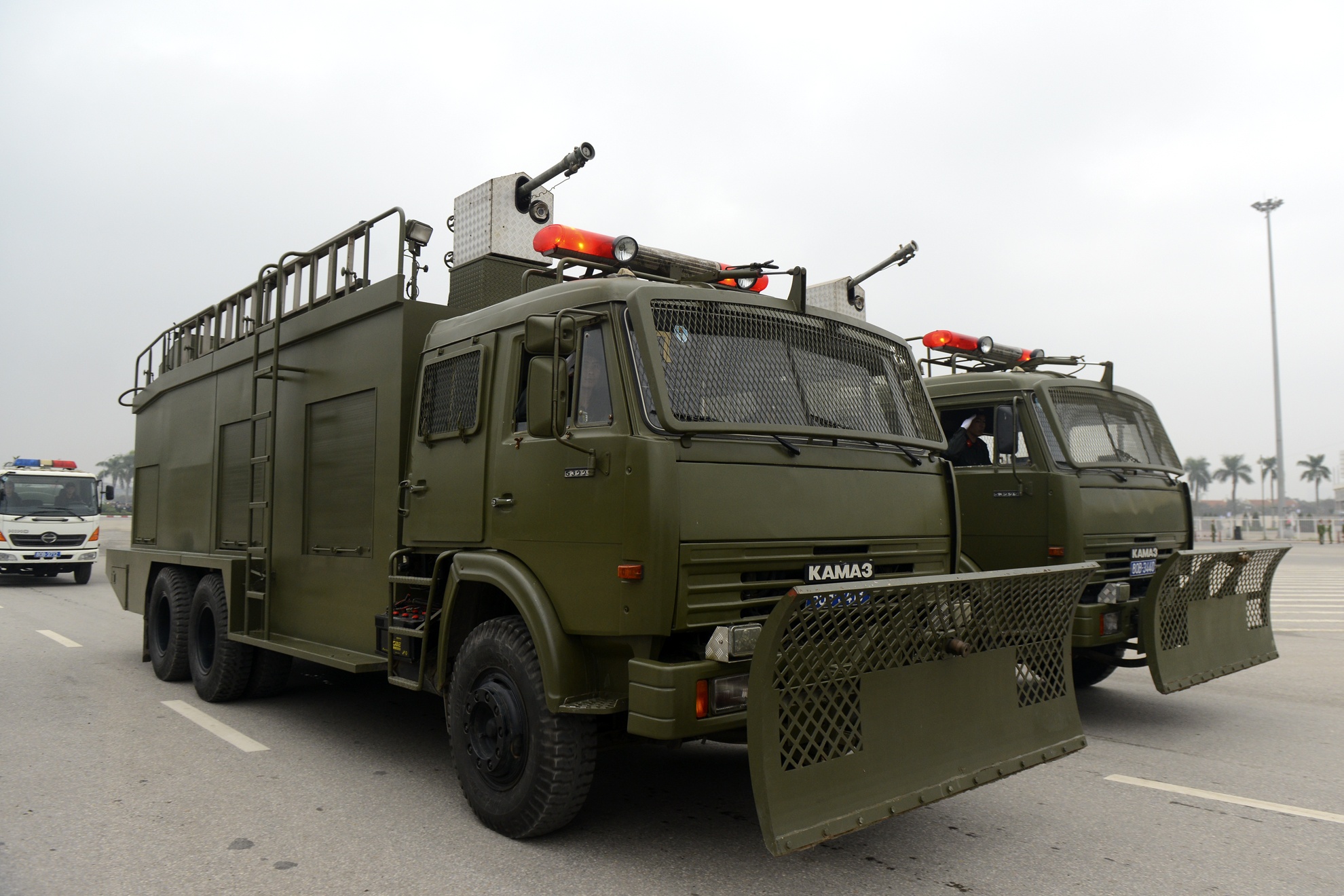 Dàn xe chống khủng bố tham gia bảo vệ Đại hội Đảng