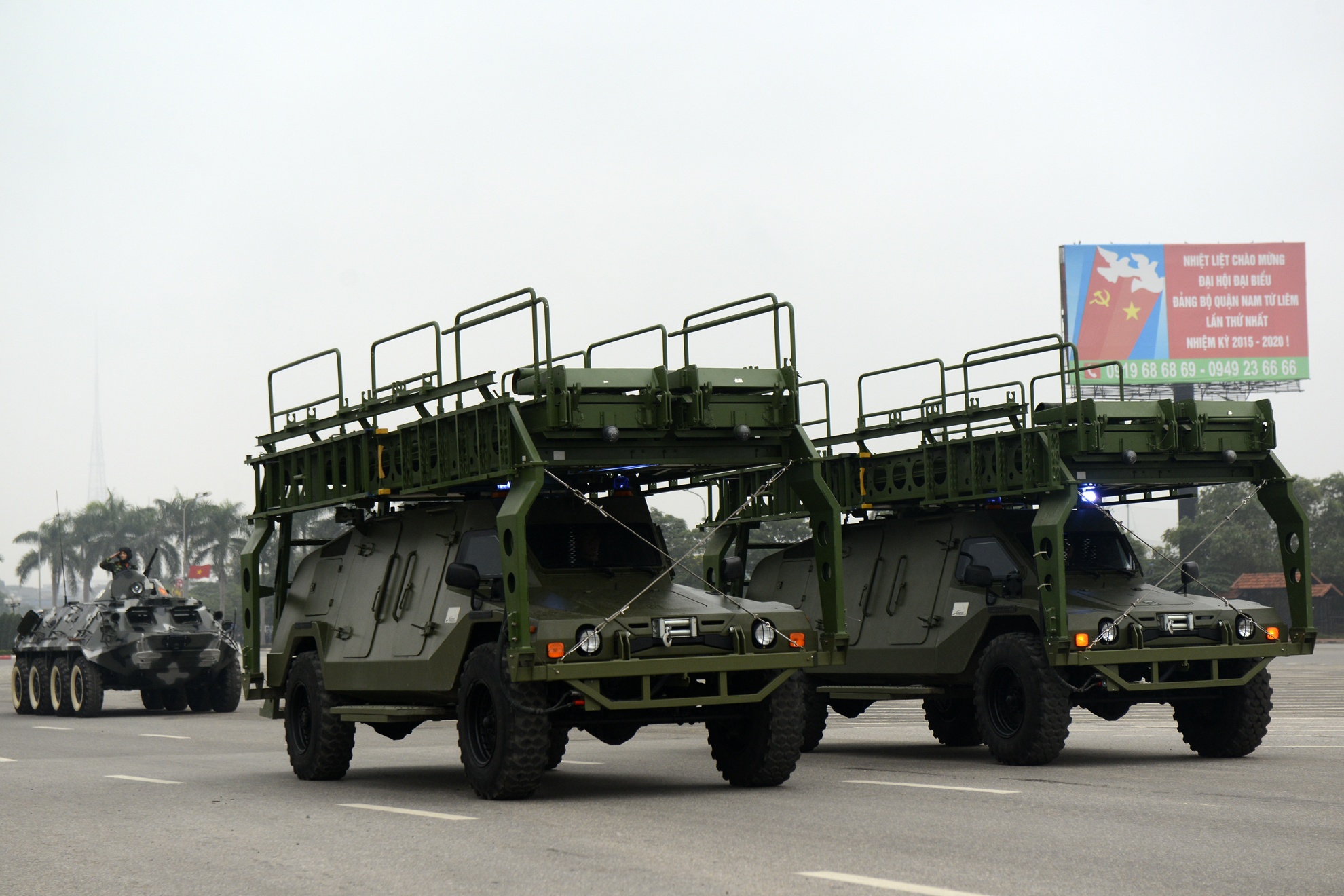| Trong số 125 ôtô đặc chủng tham gia Lễ xuất quân và diễn tập lần này, nhiều chiếc thuộc loại "khủng" trong khu vực, được trang bị vũ khí tối tân, có sức chiến đấu cao. |