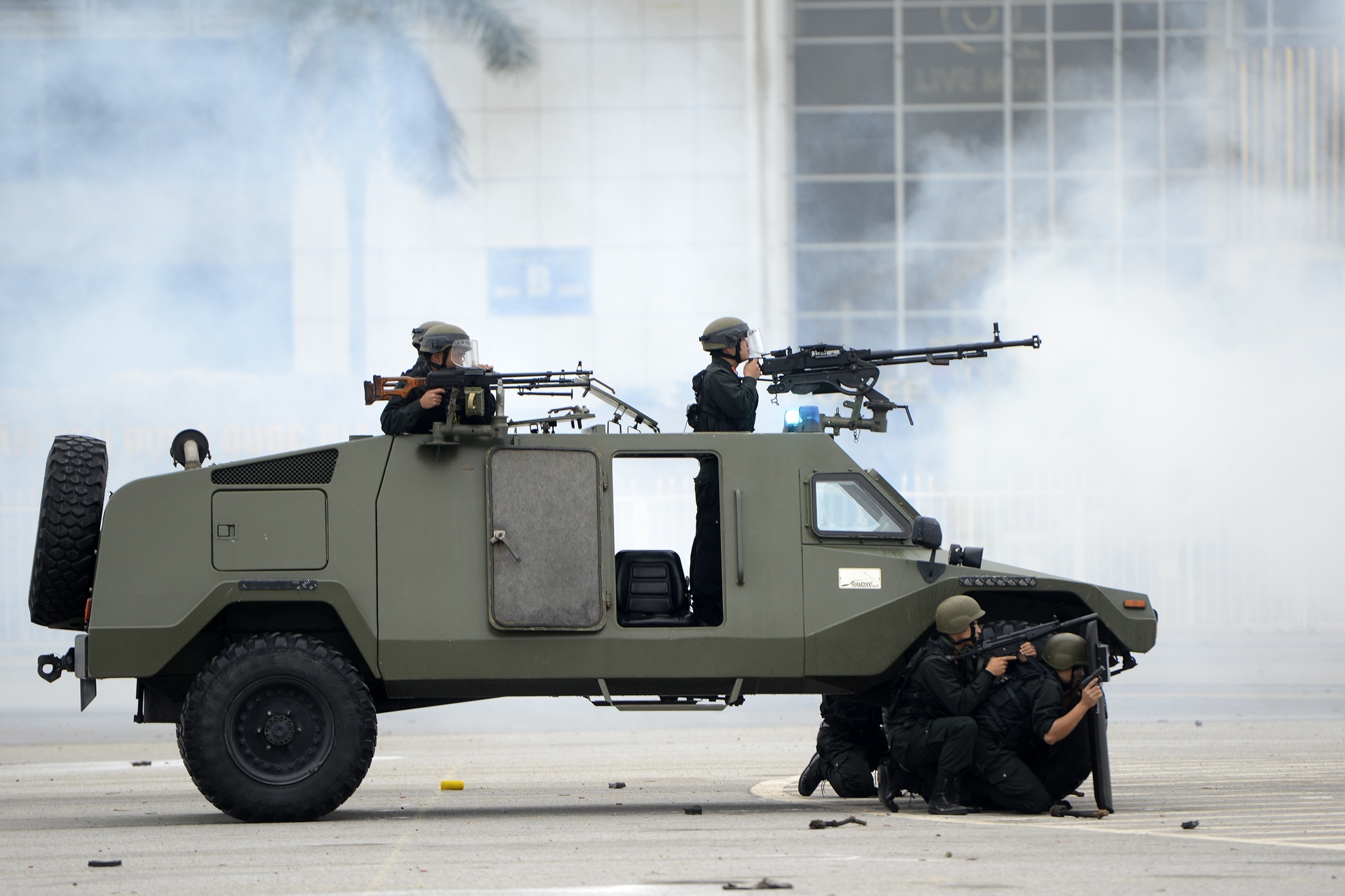 | Ngoài 125 xe đặc chủng chủ yếu làm nhiệm vụ chống khủng bố, bạo loạn còn có 100 xe chở quân các loại, xe dẫn đường, cứu thương... |