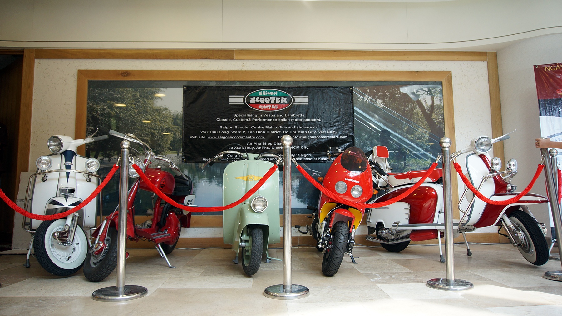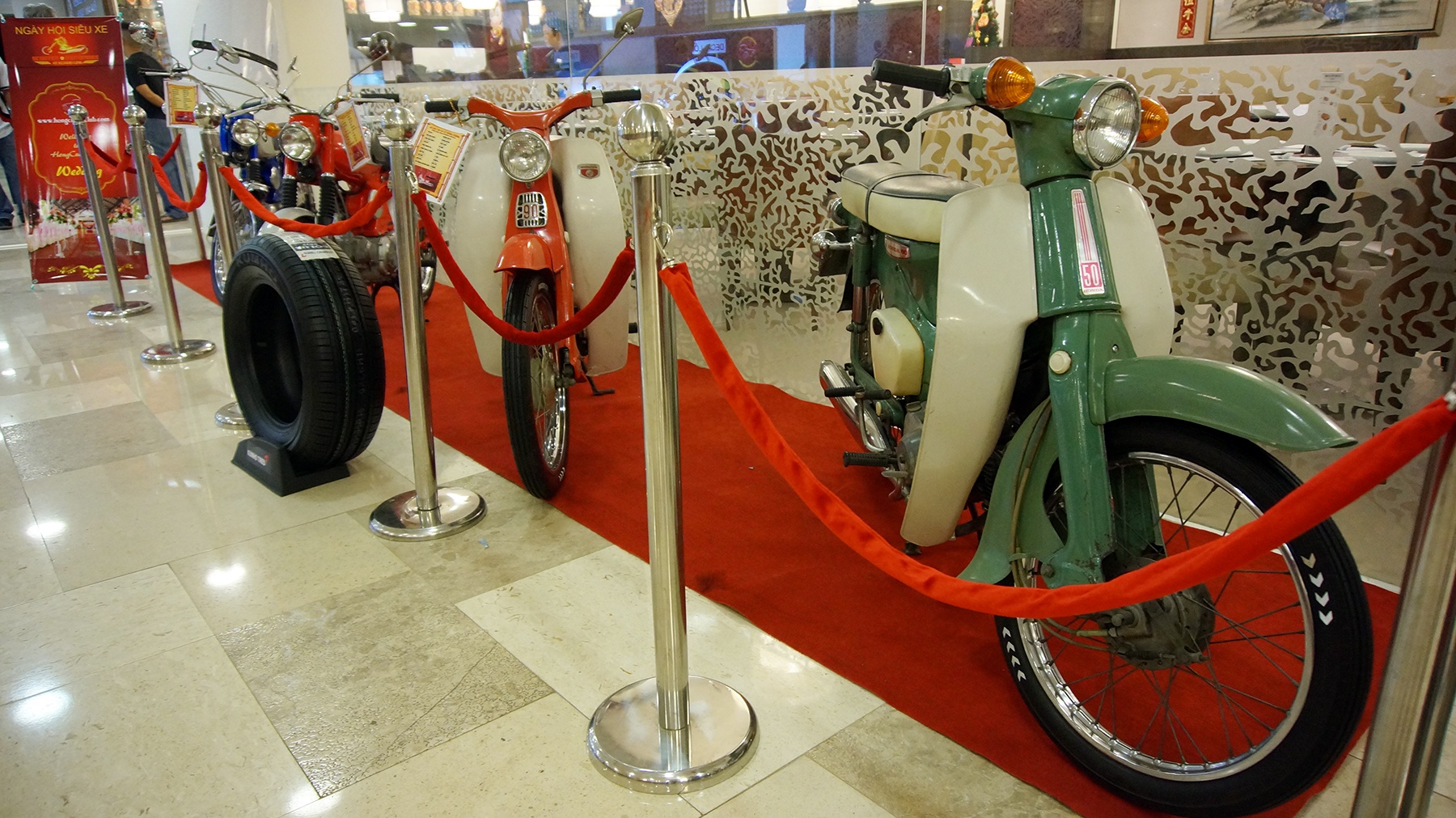 | Ngoài bộ sưu tập xe cổ của Hồng Cường, một câu lạc bộ khác cũng mang đến những chiếc xe cổ dạng scooter được phục chế khá mới. |