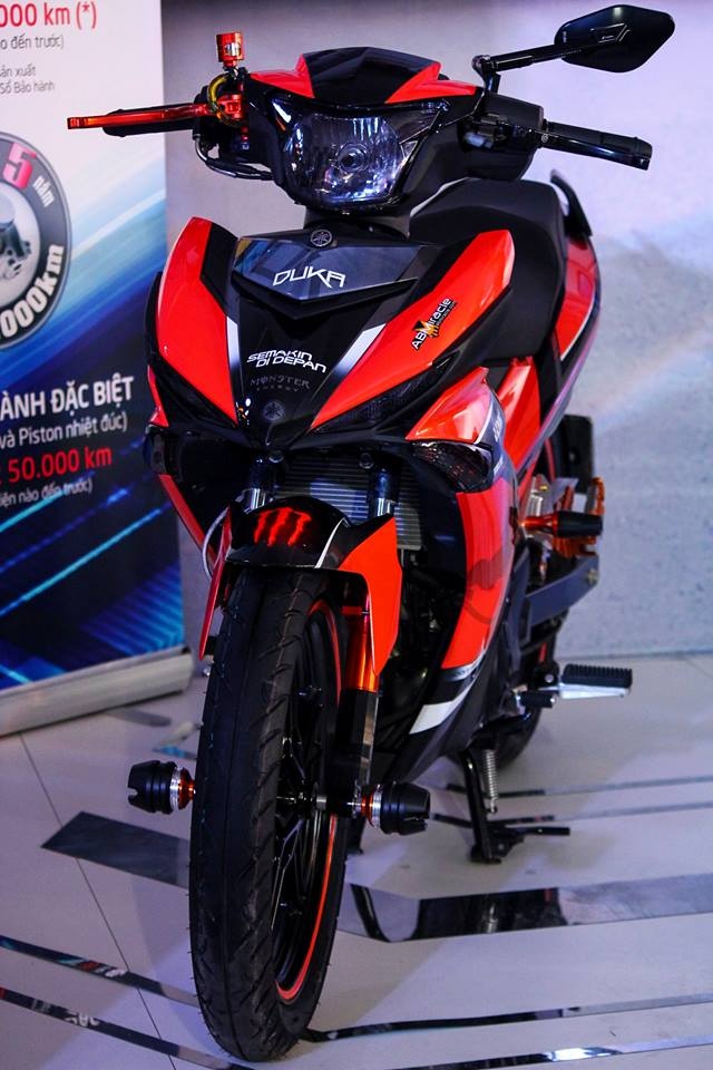 Ngoài ra, chiếc Exciter 150 màu cam cũng được sơn tem đấu và lên đồ chơi.