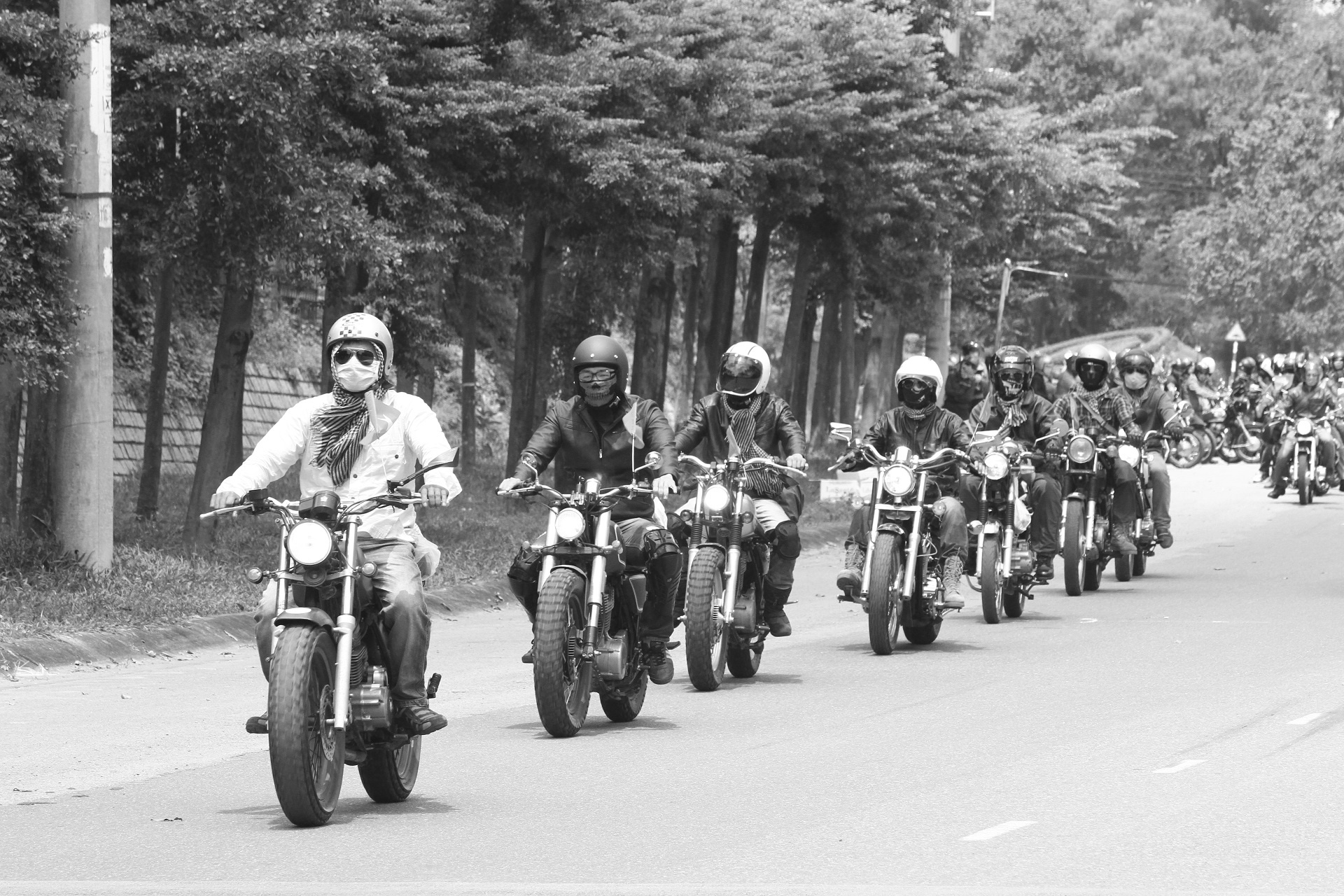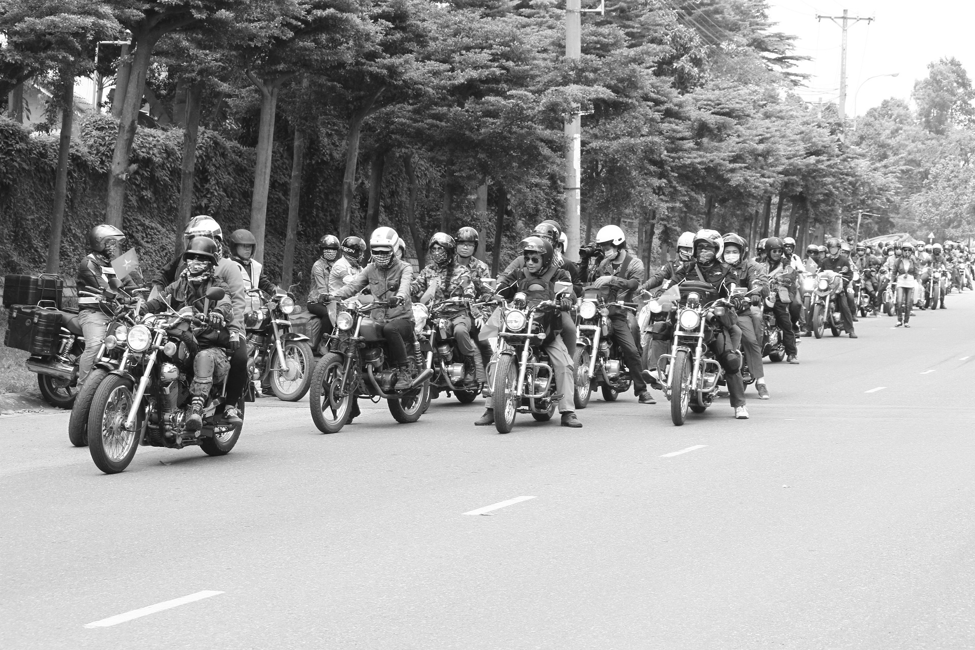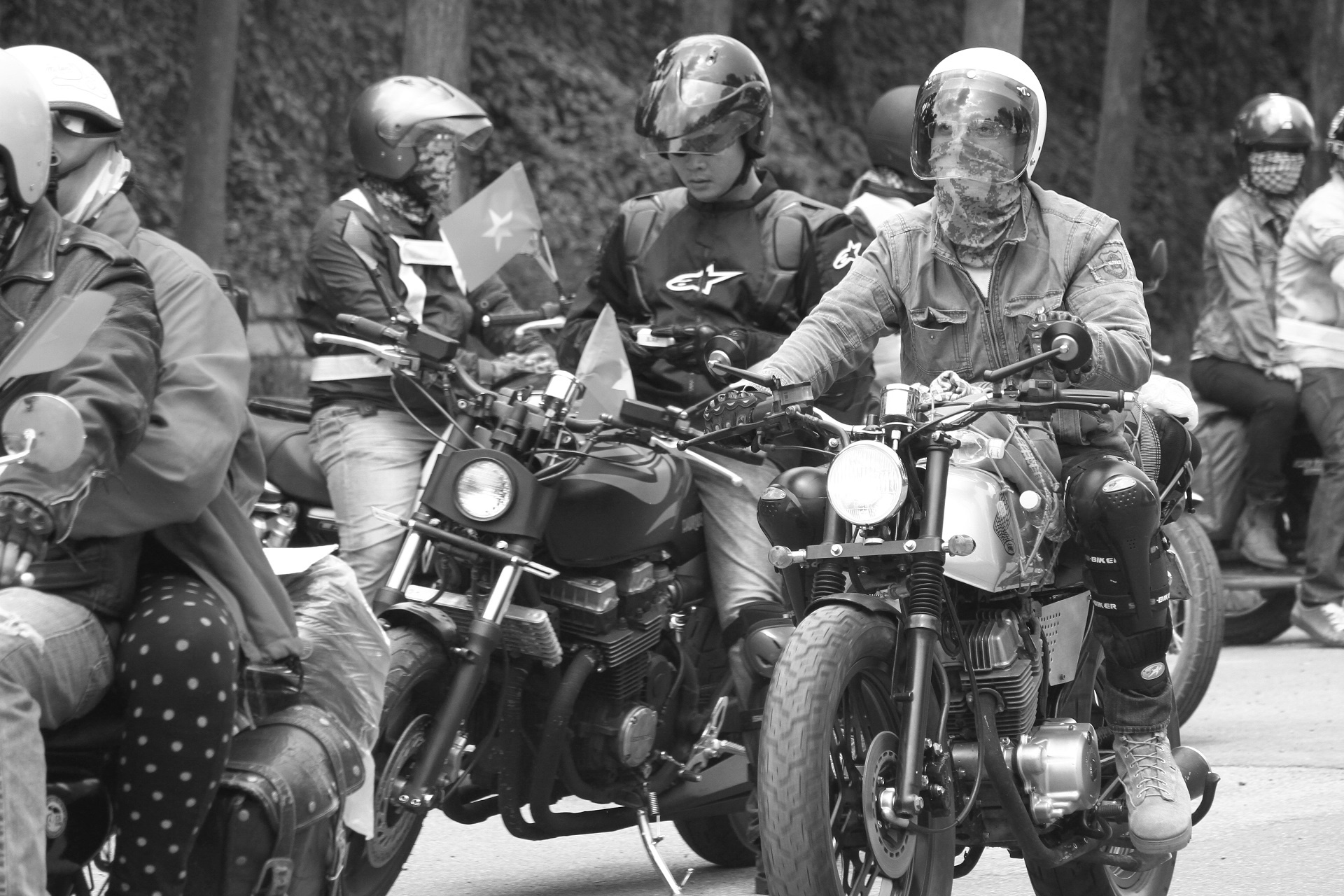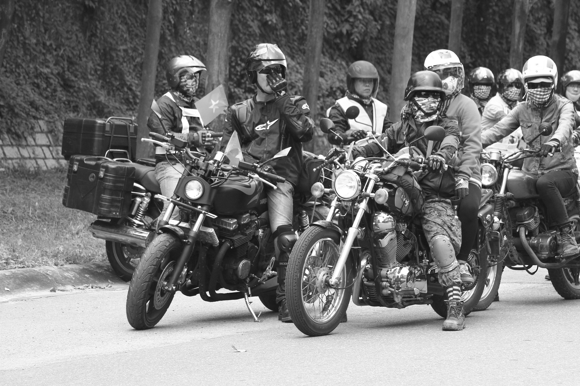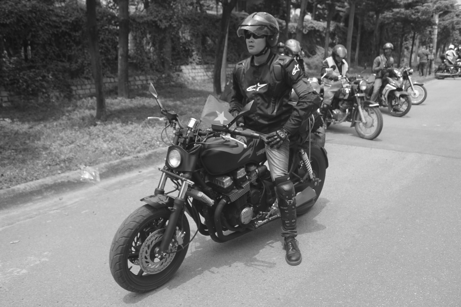 | Các biker đi thành hàng đơn nhằm đảm bảo an toàn. Không ai nhìn thấy mặt nhau bởi họ đều bịt kín khẩu trang, kính tối màu, mũ bảo hiểm cả đầu và những bộ trang phục áo khoác chống nắng. |