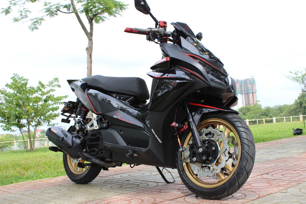 | Mẫu Air Blade được chế mủ dựa trên ý tưởng xe mô tô Kawasaki Z1000. Màu sơn chủ đạo toàn xe là màu đen, kết hợp chỉ đỏ làm điểm nhấn. |