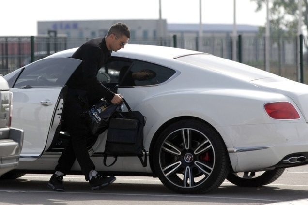 | Tiền vệ David Silva của Man City lái Bentley Continental đến sân tập Etihad. Mức giá của siêu xe này rơi vào khoảng 200.000 bảng. |
