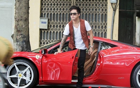| Ferrari 458 Italia: Sự xuất hiện nổi bật của Tuấn Hưng trên phố với chiếc Ferrari có giá khoảng 5,5 tỷ đồng màu đỏ gây chú ý với người đi đường. |