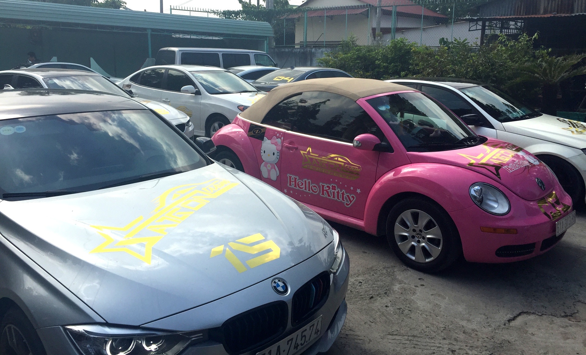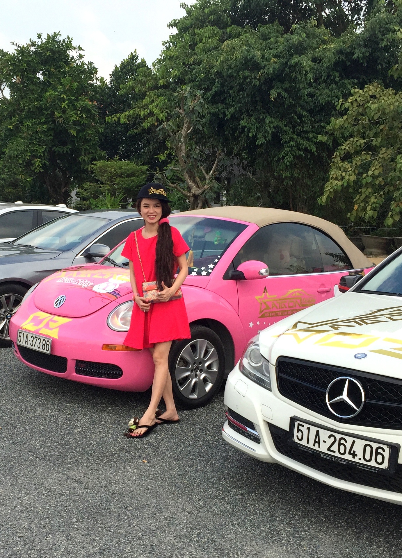 | Chiếc Volkswagen Beetle dán hình chú mèo Hello Kitty khá dễ thương, từng gây nhiều sự chú ý mỗi khi xuất hiện trên đường. |