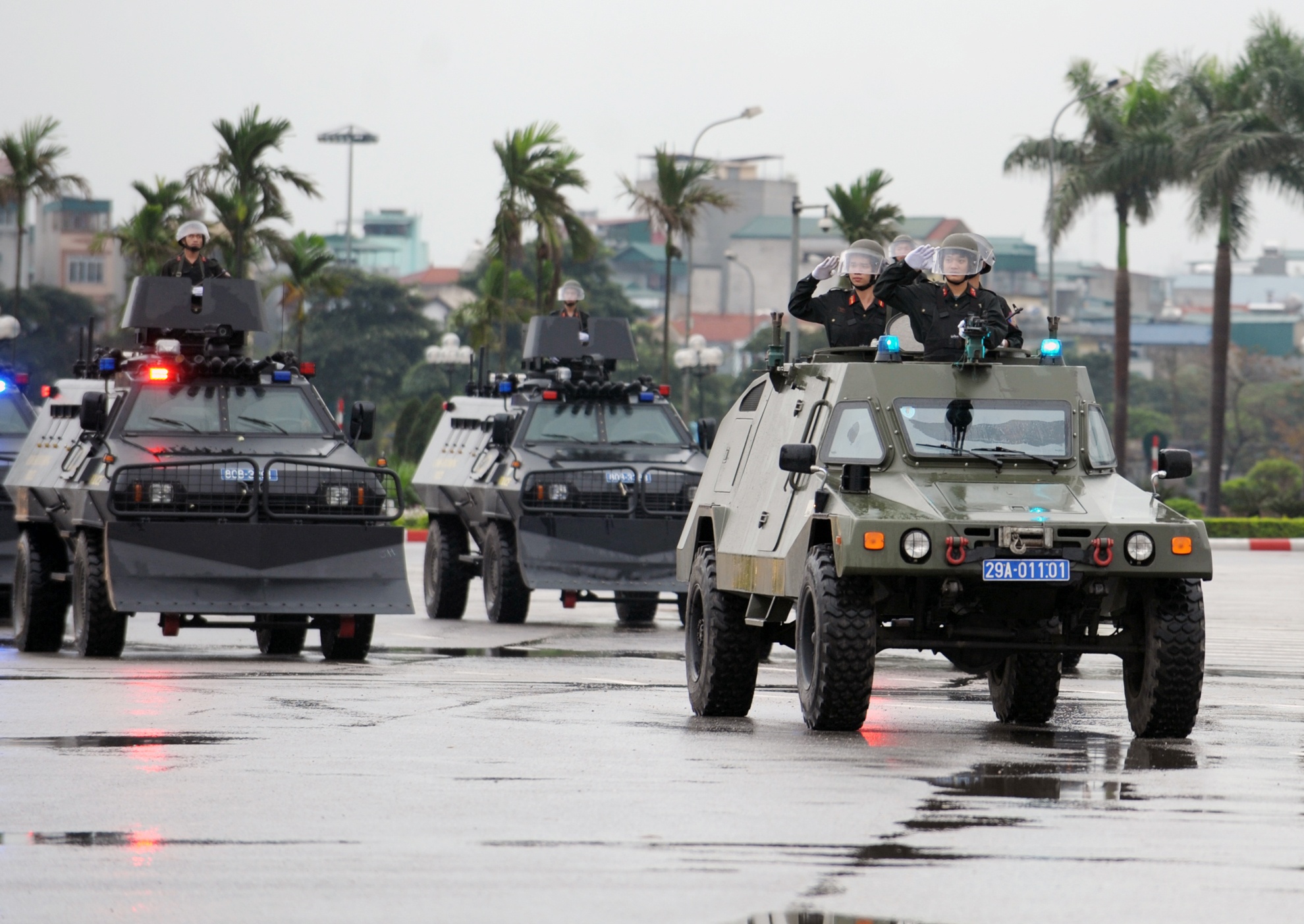Đi đầu khối diễu hành là 2 xe tăng thiết giáp và 4 bọc thép đặc chủng trang bị cho Cảnh sát cơ động và Cảnh sát đặc nhiệm. Xe có nhiệm vụ phòng chống khủng bố, giải cứu con tin. Xe có thân và kính chống đạn, cấu trúc hình chữ V, chống mìn, chở được 10 cán bộ, đạt vận tốc tối đa trên đường bằng phẳng 100km/h.