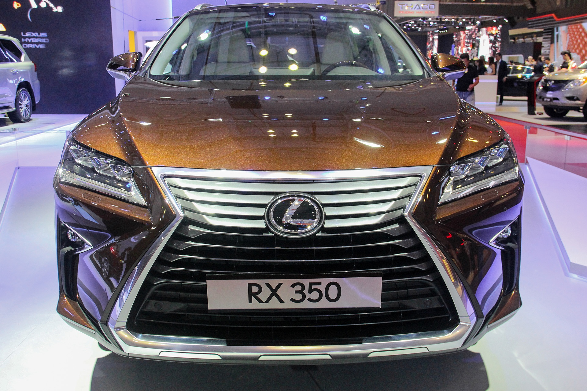 Mẫu SUV 5 chỗ RX 350 cũng thế hệ mới nhất cũng góp mặt tại triển lãm xe lần này. Giống mẫu xe đàn anh LX 570, RX 350 mới cũng được thiết kế lại khá nhiều. Phần đầu xe khoẻ khoắn, cứng cáp hơn với những đường gân chạy dọc nắp ca pô, đường viền lưới tản nhiệt. Cụm đèn pha, hốc gió cũng cứng cáp hơn với thiết kế mới. Không gian nội thất của RX350 khá rộng rãi. Xe được trang bị cửa sổ trời, màn hình giải trí 12,3 inch...