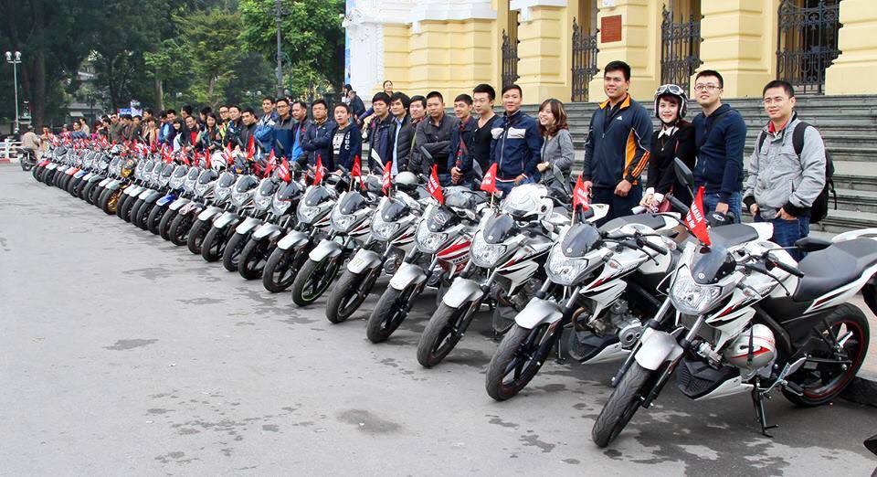 | Loạt xe naked-bike FZ150i của thành viên hội Yamaha FZ150i Hà Nội chủ yếu là phiên bản màu trắng được phân phối chính hãng với giá 67,5 triệu đồng. |