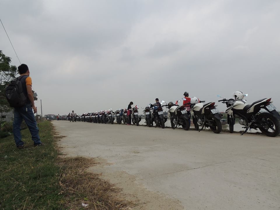 | Tại buổi diễu hành từ Hà Nội đến Bắc Ninh mới đây, đoàn ghé qua một số địa danh ở địa phương tham quan và chụp hình lưu niệm. |