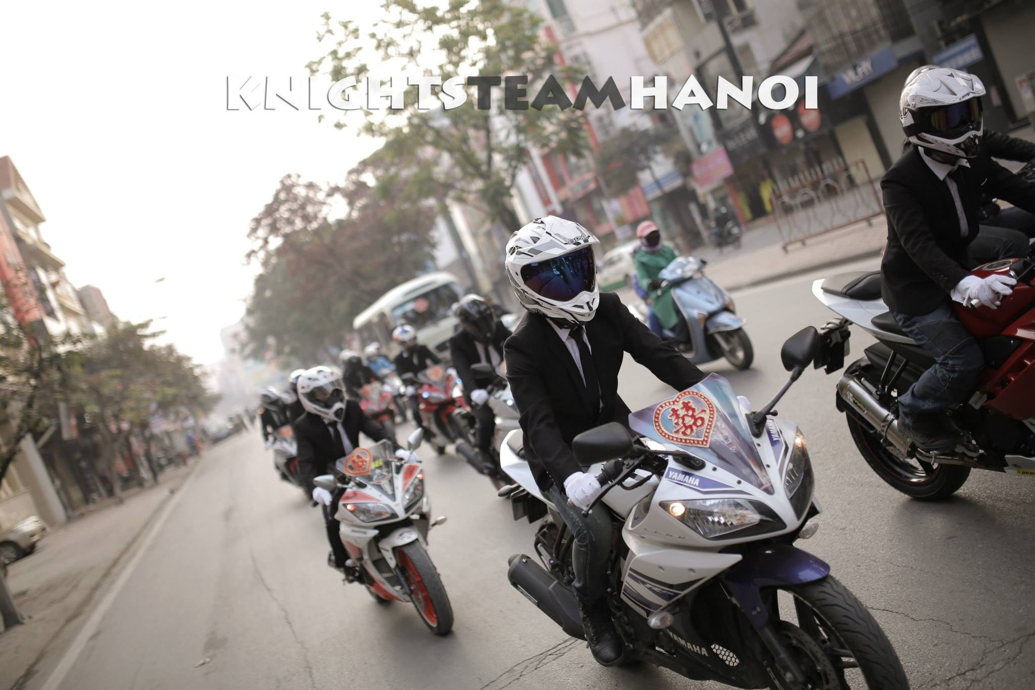 | Đám cưới đặc biệt này là của một thành viên trong câu lạc bộ chơi xe Yamaha R15 mang tên Knights Team Hanoi. |