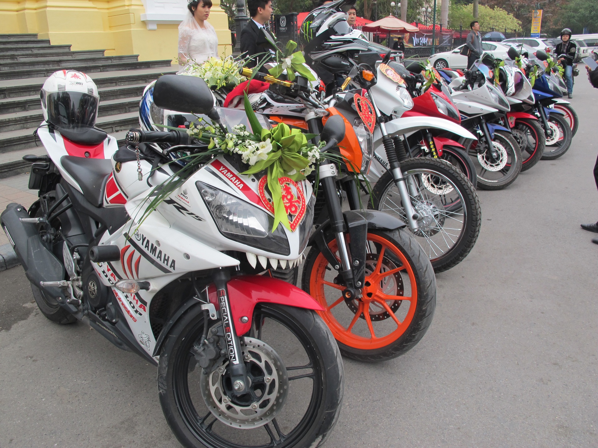 Dàn Yamaha R15 hộ tống xe cào cào đi đón dâu tại Hà Nội