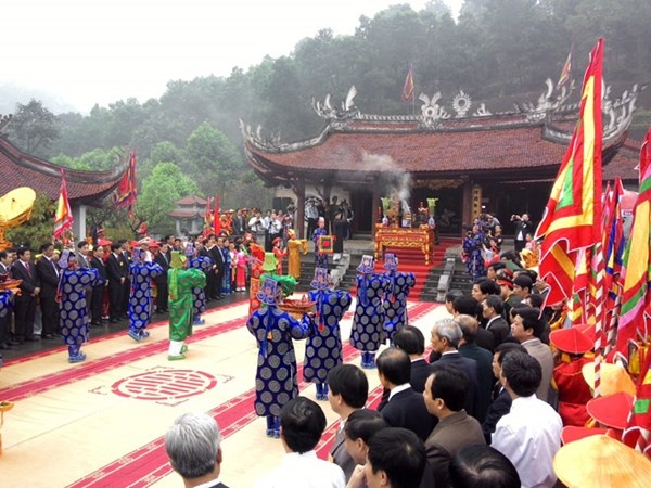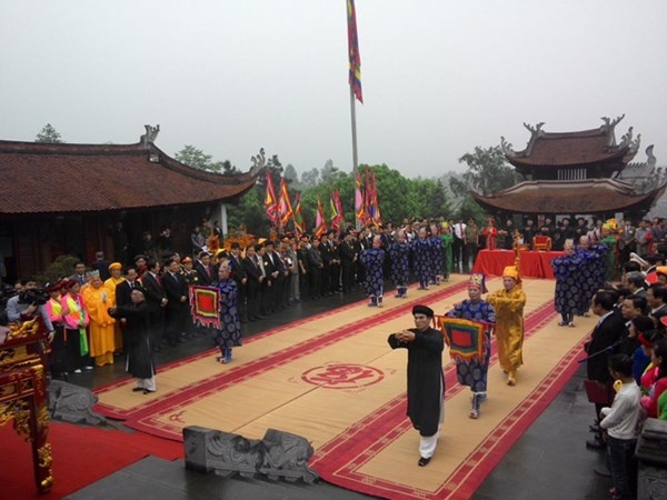 Với nghi thức truyền thống đã được tổ chức qua nhiều năm, đi đầu đoàn hành lễ có hai tiêu binh mang cờ Tổ quốc và cờ lễ, tiếp đến là hai hàng thiếu nữ mang hương hoa, lễ vật, tiếp theo là đoàn rước kiệu cổ của xã Chu Hóa (TP Việt Trì), phía sau là chủ lễ và đoàn dâng hương.