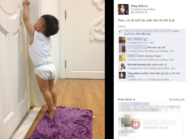 | Thủy Anh chia sẻ hình ảnh của bé trai tên Ken. Văn Mai Hương cũng vào bình luận. |