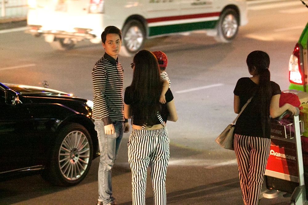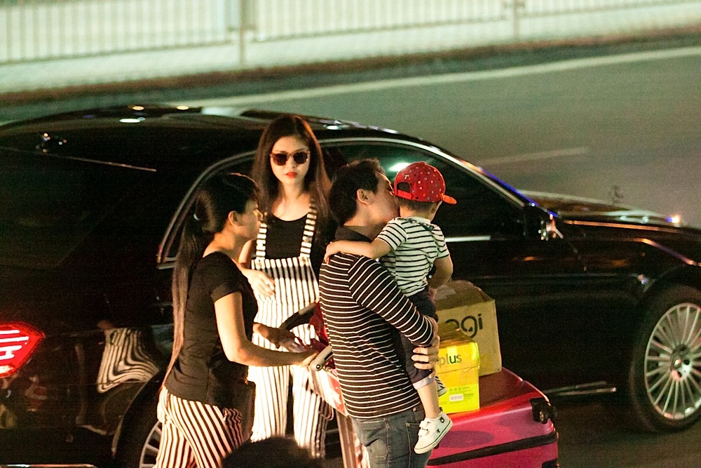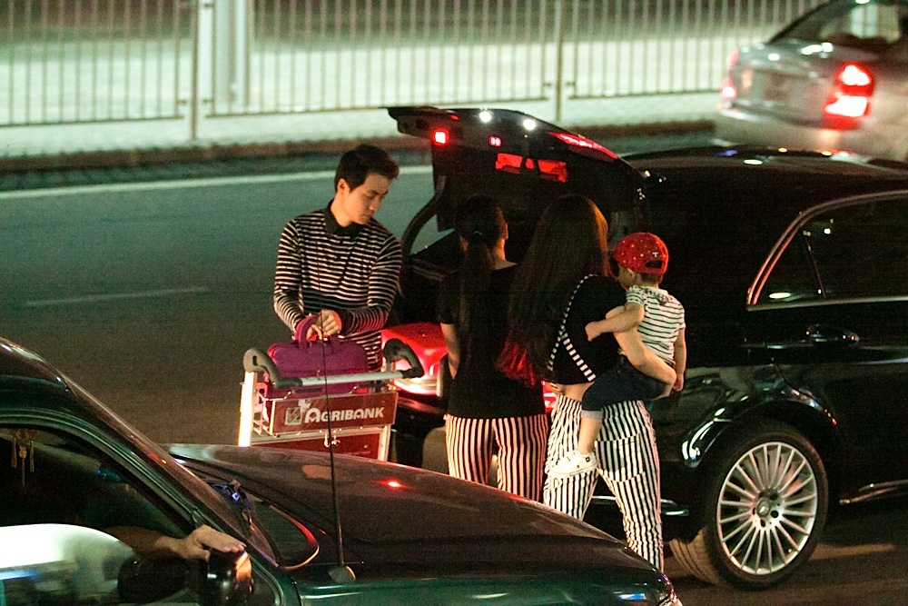 Tối 31/10, trong khi cả Sài Gòn tấp nập chuẩn bị cho lễ hội Halloween, nam ca sĩ "Nơi đâu bán phép màu" lại lặng lẽ tháp tùng vợ con ra sân bay Tây Sơn Nhất.