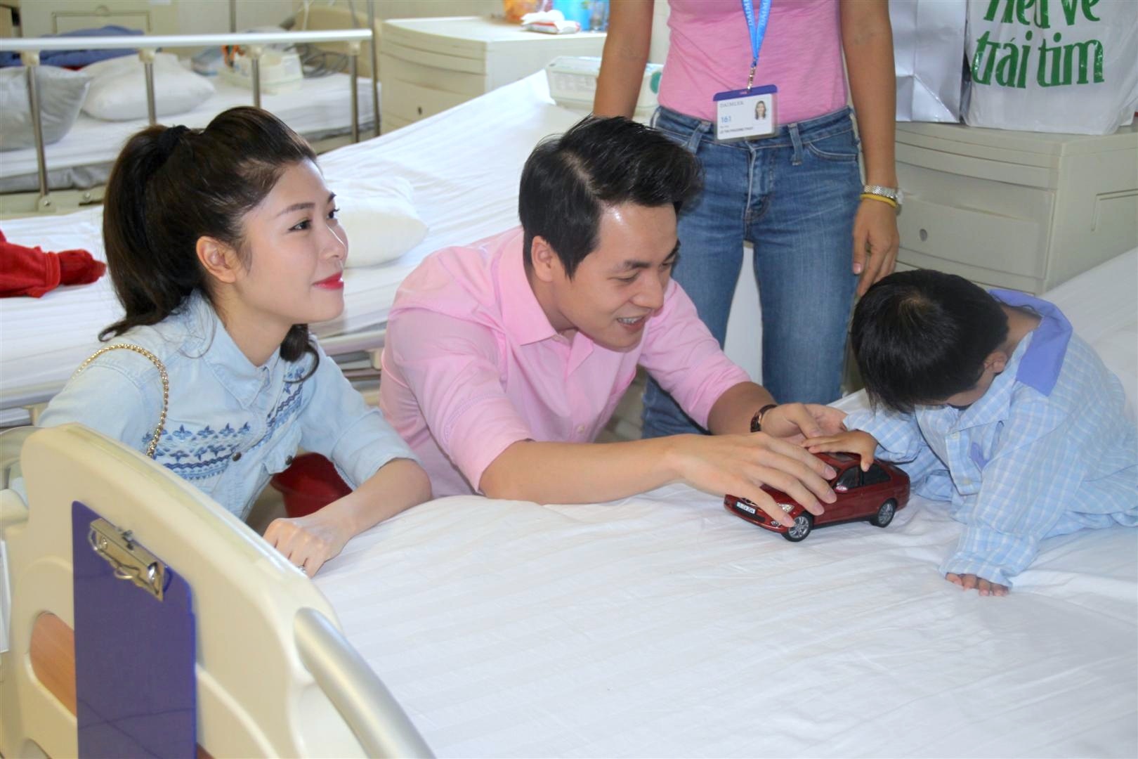 | 28/11 là sinh nhật của Đăng Khôi. Nhưng thay vì tụ tập cùng bạn bè hay gia đình, người thân, ngay từ sáng sớm, nam ca sĩ đã cùng vợ có mặt tại một bệnh viện ở Sài Gòn để thăm bé Đặng Duy Kha. |
