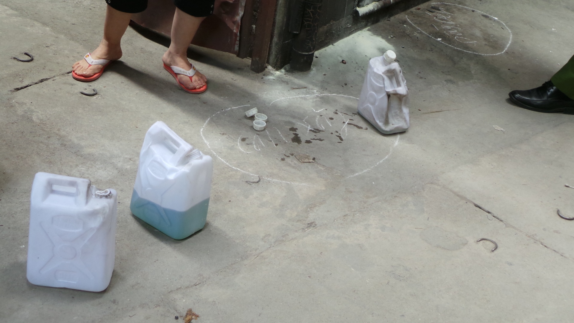 Theo người dân, khi dập lửa xong, tại hiện trường thấy 3 cái can nhựa loại 5 lít đã mở nắp vứt lăn lóc sát 2 ngôi nhà bị cháy, một can vẫn còn xăng bên trong.