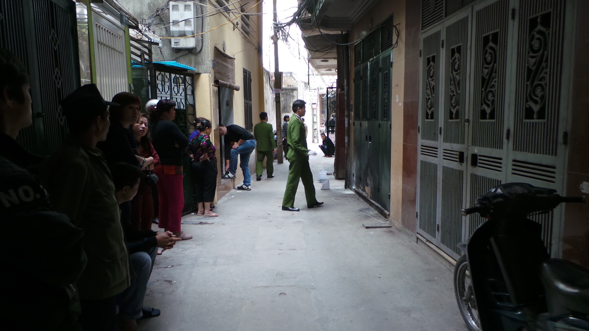| Người dân chứng kiến vụ việc đổ tới khi công an khám nghiệm hiện trường. |