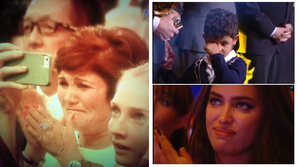 | Mẹ, bạn gái và con trai rưng rưng nước mắt trong khoánh khắc vinh danh của Ronaldo. |
