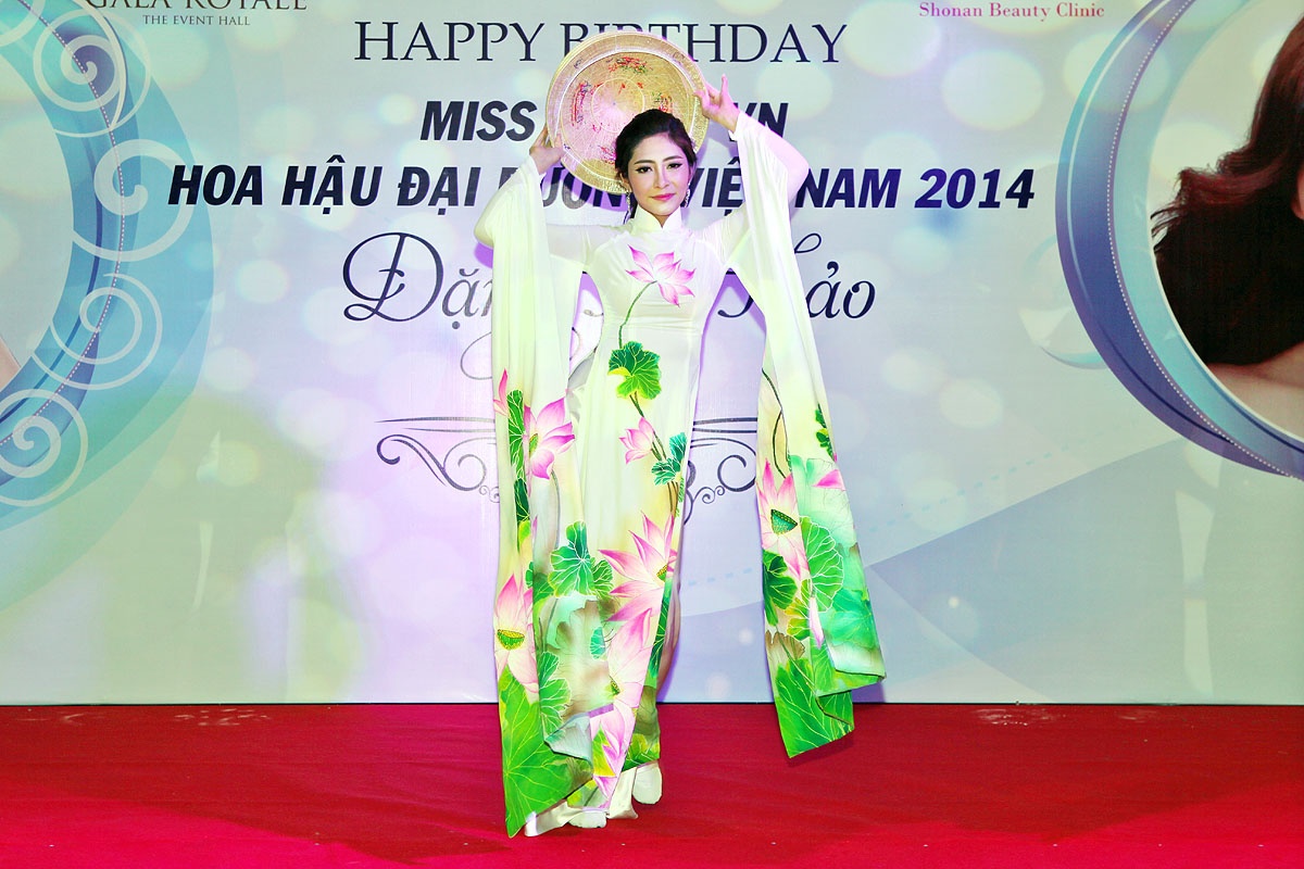 | Trong tiệc sinh nhật, Đặng Thu Thảo trổ tài múa truyền thống. Người đẹp thể hiện lại vũ điệu từng giúp cô giành chiến thắng tại cuộc thi Hoa hậu đại dương 2014. |