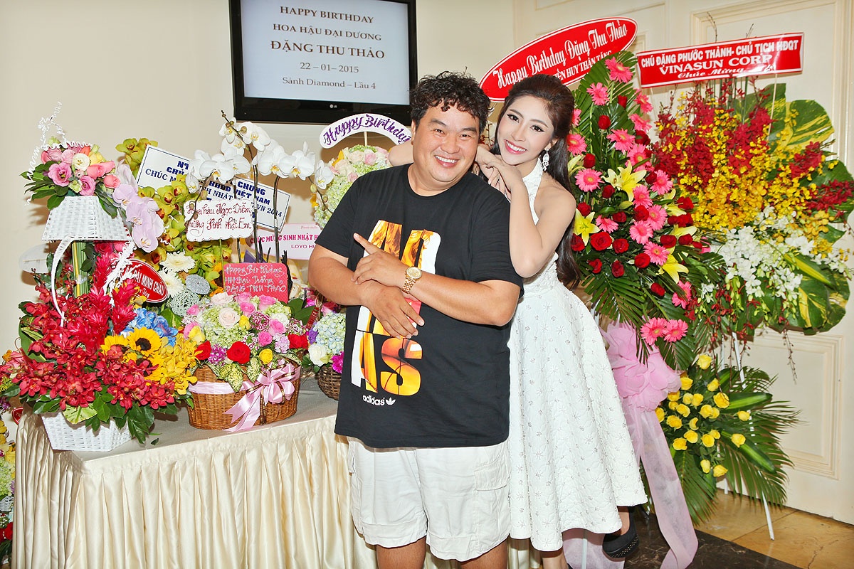 | Bác sĩ Chiêm Quốc Thái là chỗ thân thiết với Hoa hậu đại dương Việt Nam. Sau một thời gian trải qua những biến cố tình cảm với Phương Trinh, anh trông vẫn tươi tắn, phong độ và tự tin xuất hiện tại tiệc sinh nhật. |