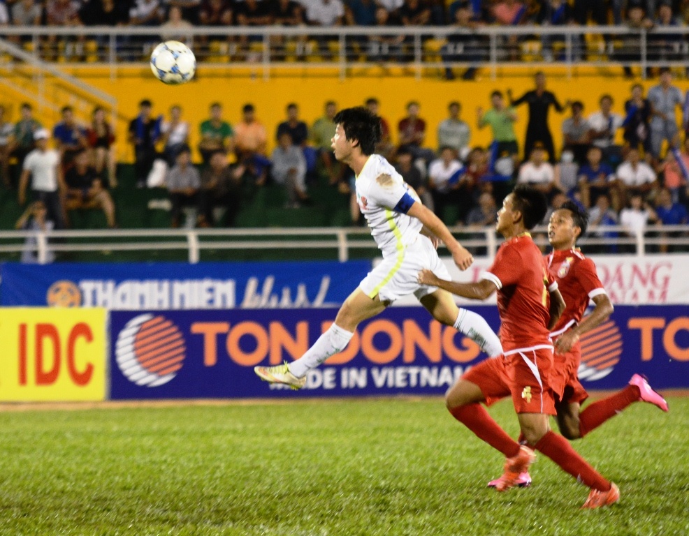 Thế nhưng, các học trò HLV Quốc Tuấn chỉ mất 10 phút để đưa trận đấu trở lại vạch xuất phát. Phút 17, Xuân Trường tung ra đường chuyền vượt tuyến, tạo điều kiện để Công Phượng thoát xuống. Ở thế đối mặt, tiền đạo số 10 của U21 HAGL bình tĩnh tâng qua đầu thủ môn Thitsar Min sau đó bật cao đánh đầu quân bình tỷ số 1-1.
