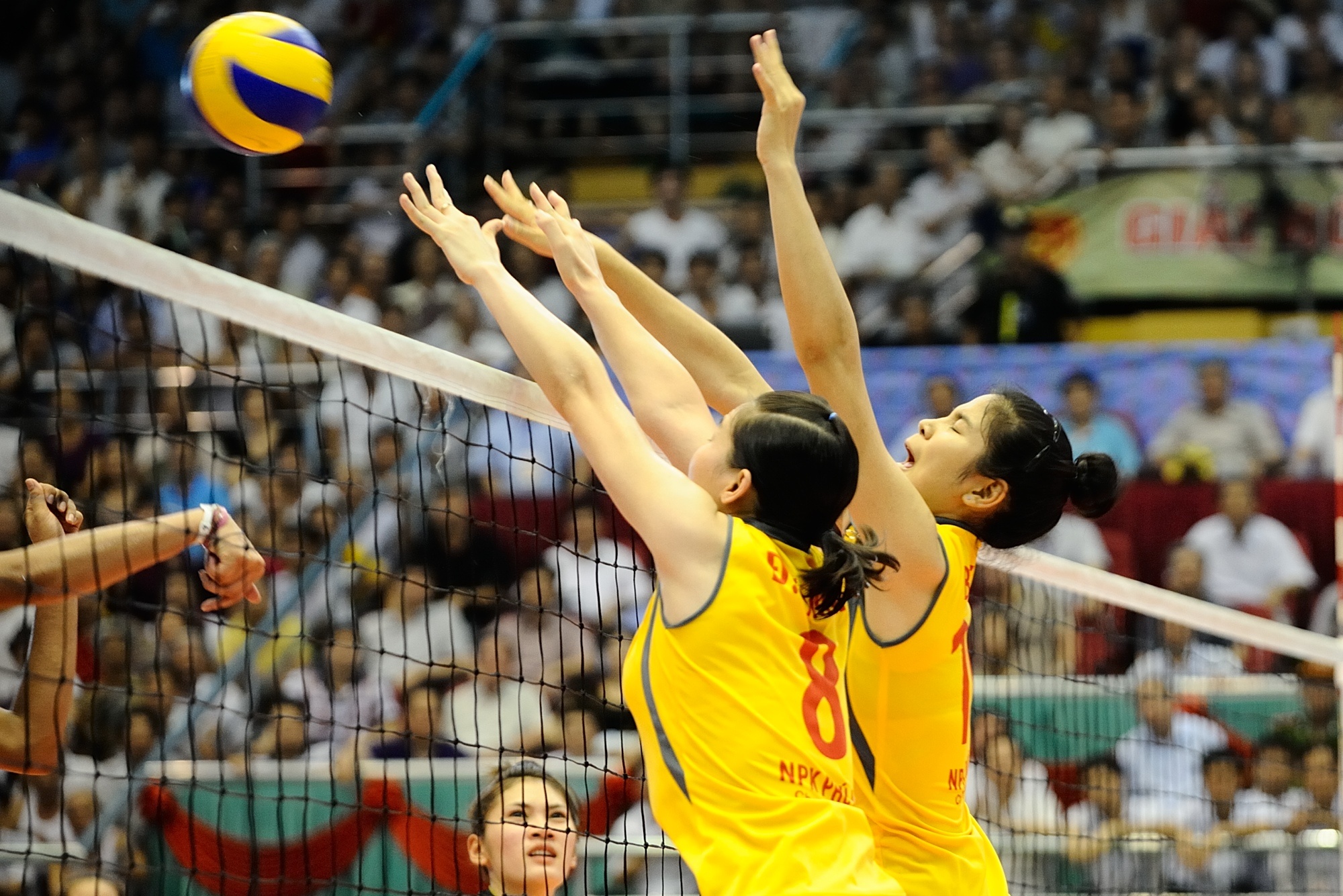 | Set đấu thứ nhất bắt đầu, quyền giao bóng thuộc về các cô gái Việt Nam. Phụ công Ngọc Hoa thực hiện những pha lên lưới từ hai biên nhằm tạo đột biến. |