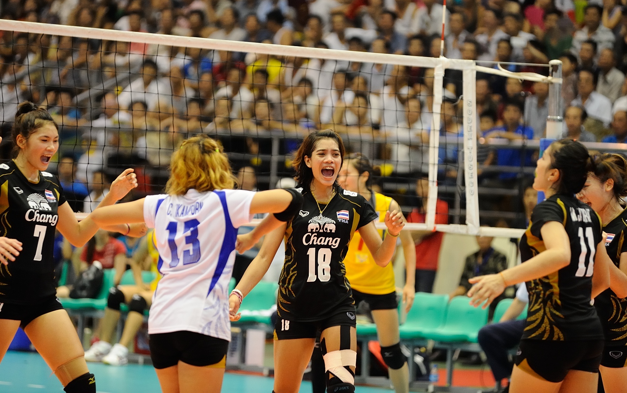| Niềm vui của đội Thái Lan khi họ đã ghi được điểm số thứ 24, chỉ còn cách chiến thắng đúng 1 điểm. Tuy nhiên đúng lúc này, tinh thần thép của các cô gái Việt Nam được phát huy hơn bao giờ hết. |