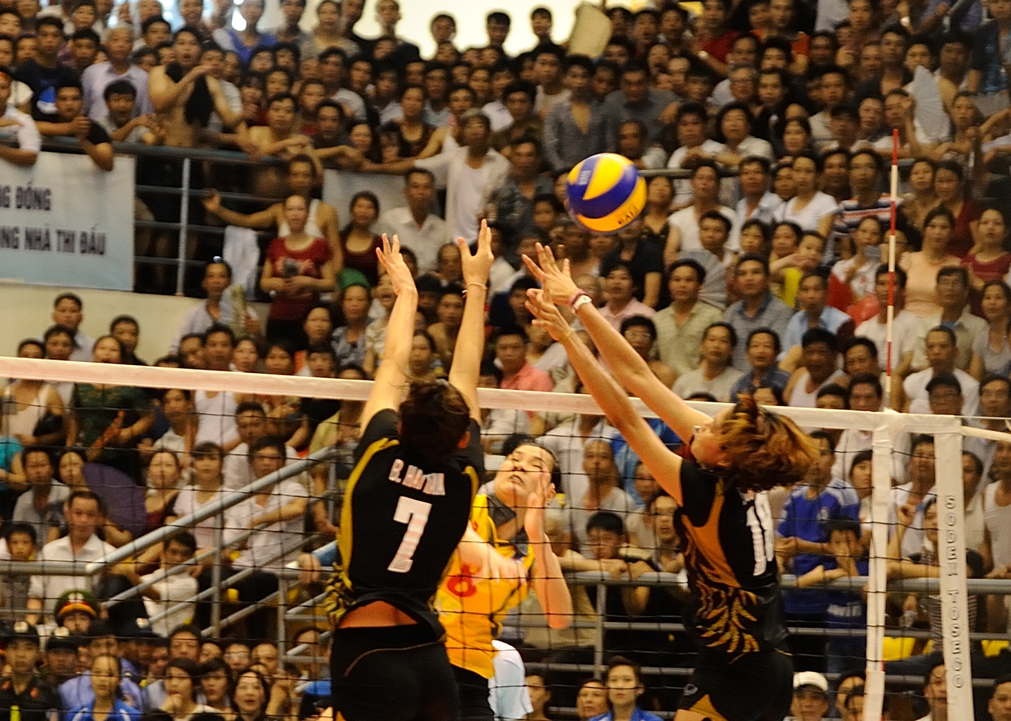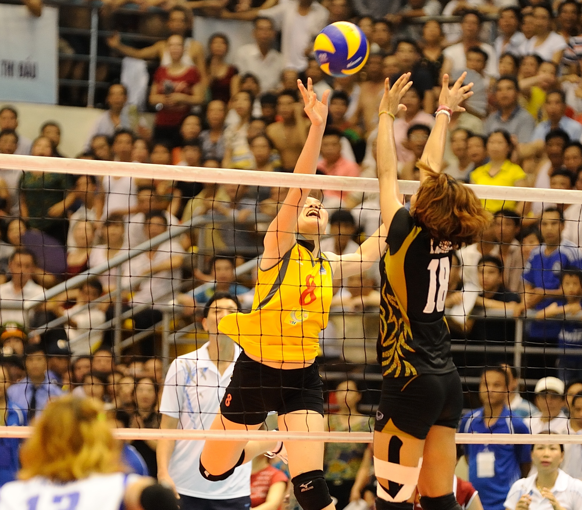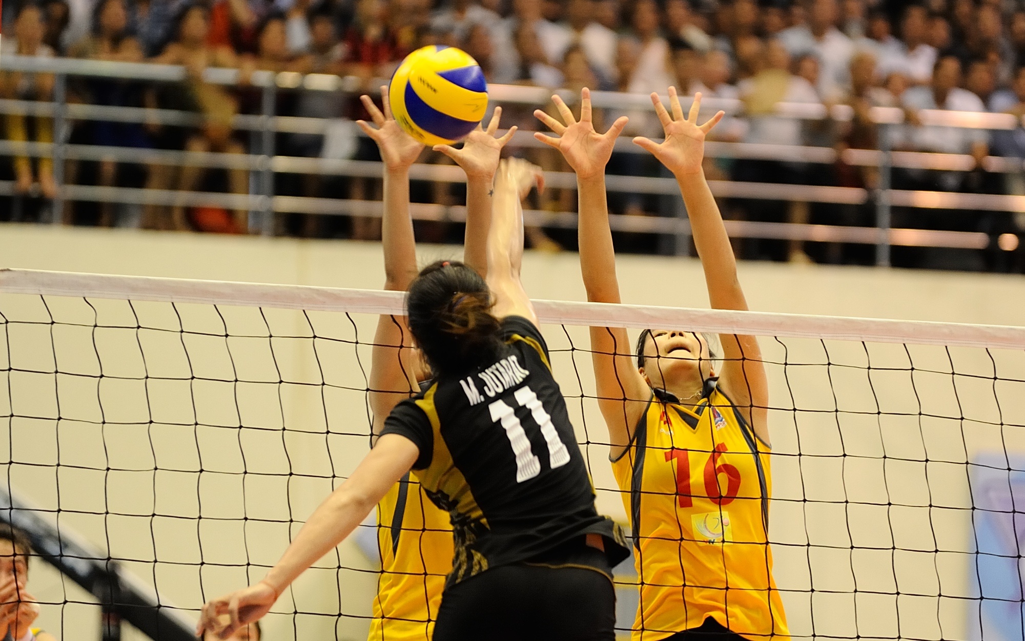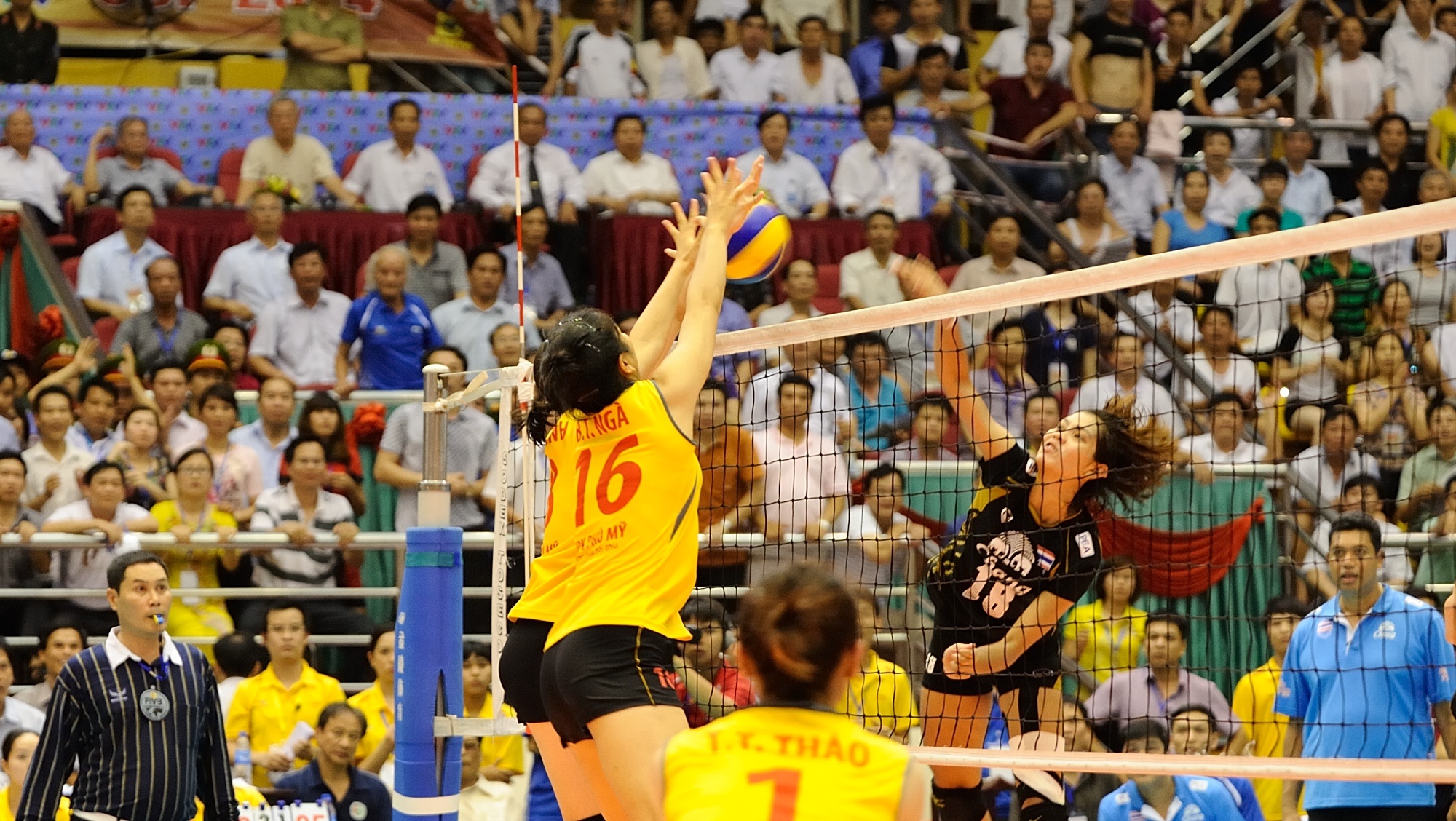 | Set đấu thứ 3, đội tuyển Thái Lan liên tục thực hiện những pha tấn công nhanh vào vị trí của chủ công Đỗ Thị Minh. Tuy nhiên, đội tuyển Việt Nam đã thực hiện những pha chồng cánh phòng thủ vị trí tốt khiến cho đội khách lúng túng. |