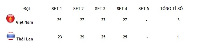 | Bảng tỷ số chi tiết trận chung kết Việt Nam đã vượt qua Thái Lan giành ngôi vô địch VTV Cup. |