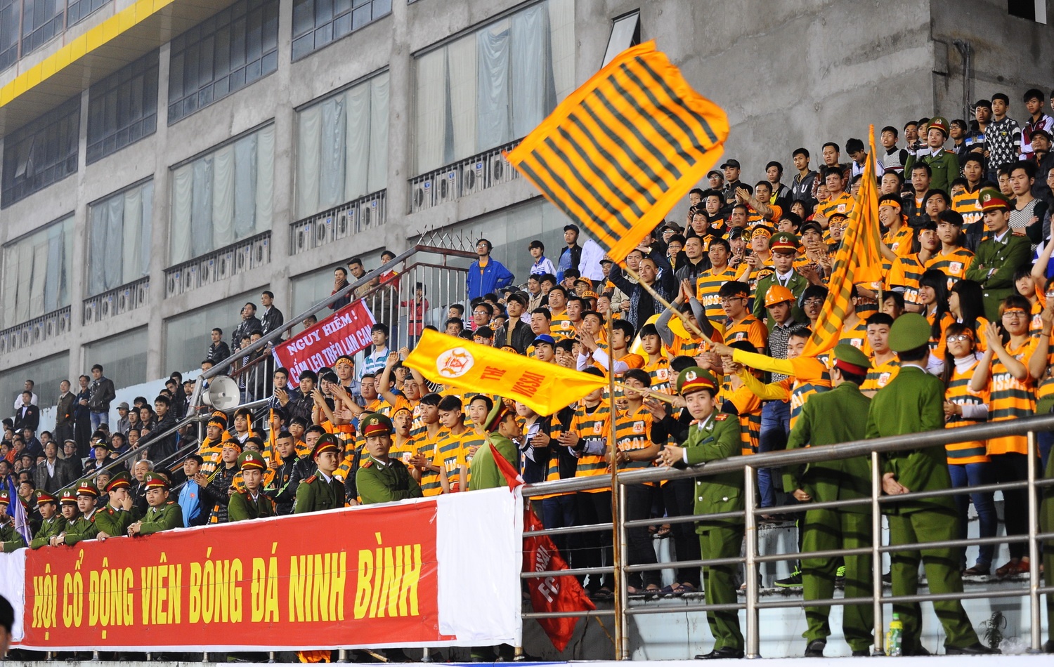 | Dù thi đấu vào ngày giữa tuần những có khá nhiều CĐV trung thành tới cổ vũ cho các cầu thủ Ninh Bình. |
