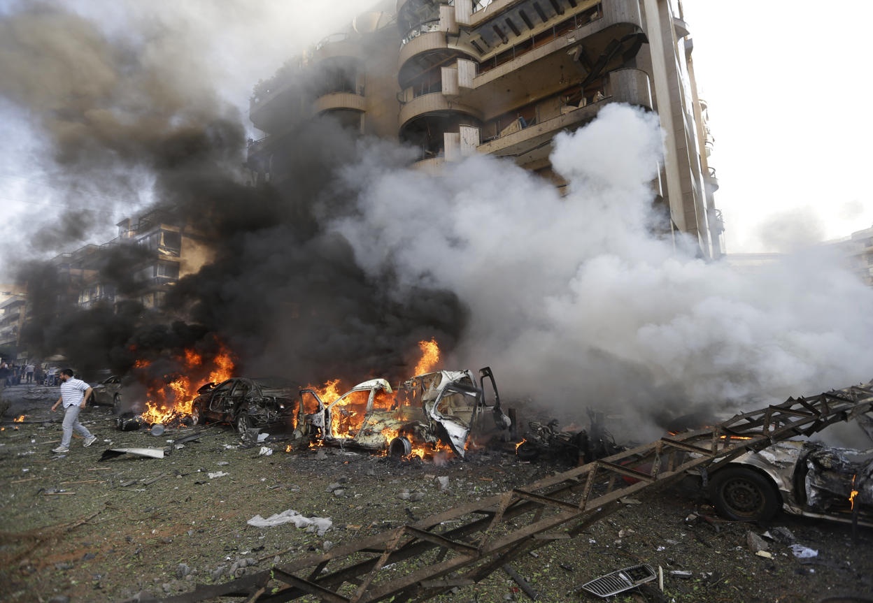 | Hai vụ đánh bom xảy ra ngay bên ngoài đại sứ quán Iran, trong khu vực Janah thuộc thành phố Beirut vào giữa buổi sáng nay theo giờ địa phương. Janah nằm dưới sự kiểm soát của tổ chức Hồi giáo vũ trang Hezbollah. Tổ chức này có quan hệ mật thiết với Iran. Ảnh: AP. |